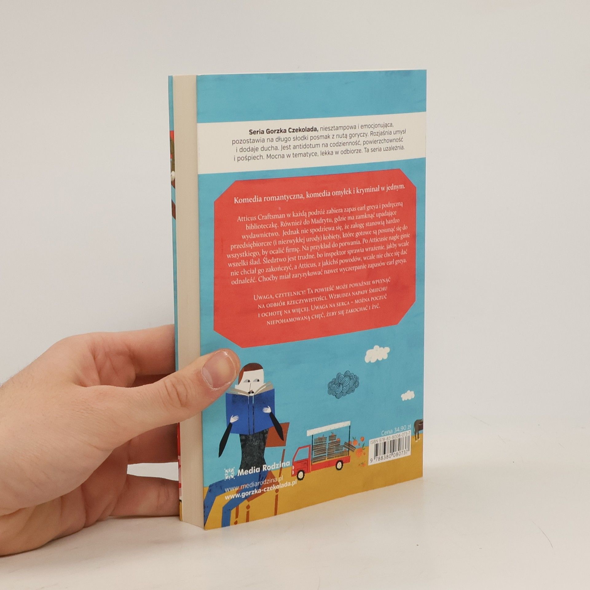 Kryminał, komedia omyłek i romans w jednym. Dla fan�w Stulatka, kt�ry wyskoczył z okna i zniknął. Atticus Craftsman w każdą podr�ż zabiera zapas Earl Greya i podręczną biblioteczkę. R�wnież do Madrytu, gdzie ma zamknąć upadające wydawnictwo. Jednak nie spodziewa się, że dynamiczna i niezwykłej urody załoga zrobi wszystko, by ocalić firmę. Po Atticusie ginie wszelki ślad. Śledztwo jest trudne, bo zauroczony detektyw wcale nie chce go zakończyć, a zatracony Atticus wcale nie chce się odnaleźć. Choćby miał zaryzykować nawet wyczerpanie zapas�w Earl Greya.
