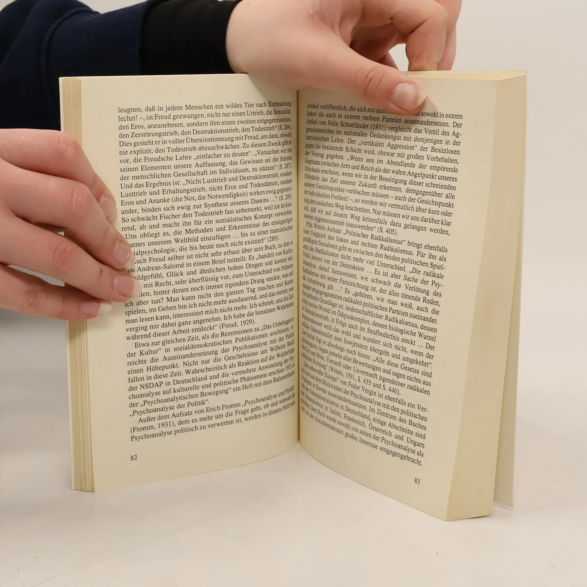 Pp. 132-151, "Die Vertreibung der Psychoanalyse, " describe the Anschluss in Vienna, plundering of Jewish property, terrorization of Jews, and the desperate attempts to flee. States that the American and British psychoanalytic associations were not eager to give affidavits to their endangered colleagues in Vienna, but individuals associated with the movement succeeded in aiding all members of the Vienna Society who had to emigrate.