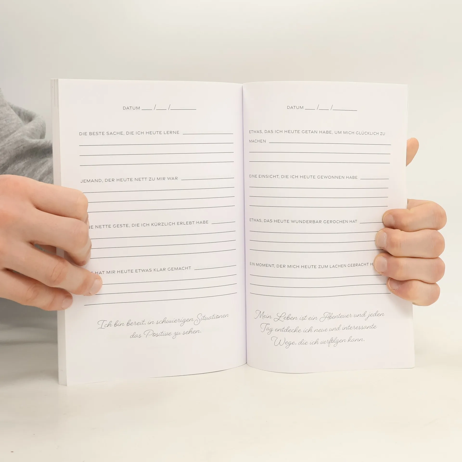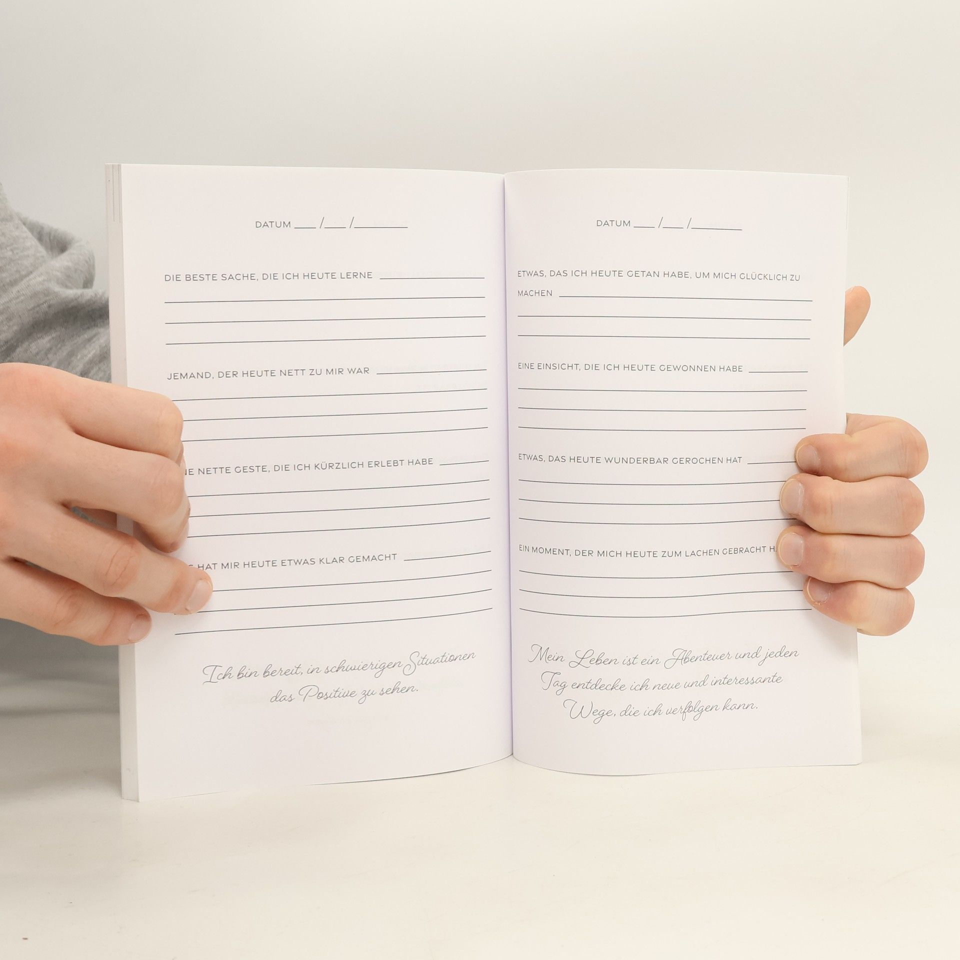 Der einfachste und schnellste Weg, mehr Dankbarkeit und Freude in deinem Leben willkommen zu heißen. Entwickle mehr Lebensfreude und Motivation durch den Fokus auf die kleinen Momente und Erfolge mit unserem bewährten Format aus täglichen Achtsamkeits- & Dankbarkeitsübungen. Und das alles in nur 5 Minuten pro Tag! Warum du dieses Dankbarkeitstagebuch lieben wirst: Einzigartige Denkanstöße für jeden Tag. Jede Tagesseite enthält 4 verschiedene Denkanstöße und 1 Affirmation für deine perfekte tägliche Reflexion und Dankbarkeitsübung Dieses Journal hat alles. Dieses Dankbarkeitstagebuch enthält eine Einführung und Erklärung zur Anwendung, tägliche Seiten für 3 Monate geführte Selbstreflexion, Monats-Check und Zielsetzungen sowie zusätzliche Notizseiten am Ende des Buches Schnell und einfach zu benutzen. Die kurzen Fragen sind so gestaltet, dass sie selbst vielbeschäftigten Menschen helfen, mehr Freude und Dankbarkeit im Leben zu finden Qualität im Taschenbuchformat. Das Buch ist im praktischen 6x9 inch Format, das dir viel Platz zum Schreiben bietet und trotzdem perfekt in jede Handtasche passt, um überallhin mitgenommen zu werden Ideale Geschenkidee. Ein wunderbares Geschenk für alle, die sich ein glücklicheres und dankbareres Leben wünschen, verschenke deinen Liebsten mehr Dankbarkeit, Achtsamkeit, Gelassenheit und Selbstliebe! Tipp: Benutze die "Blick ins Buch" Funktion an deinem PC um genau zu sehen wie das Buch von innen aussieht ♥♥♥ Klicke jetzt auf "In den Einkaufswagen" und beginne dein bestes Leben zu leben ♥♥♥ Probiere es aus, du wirst es lieben!