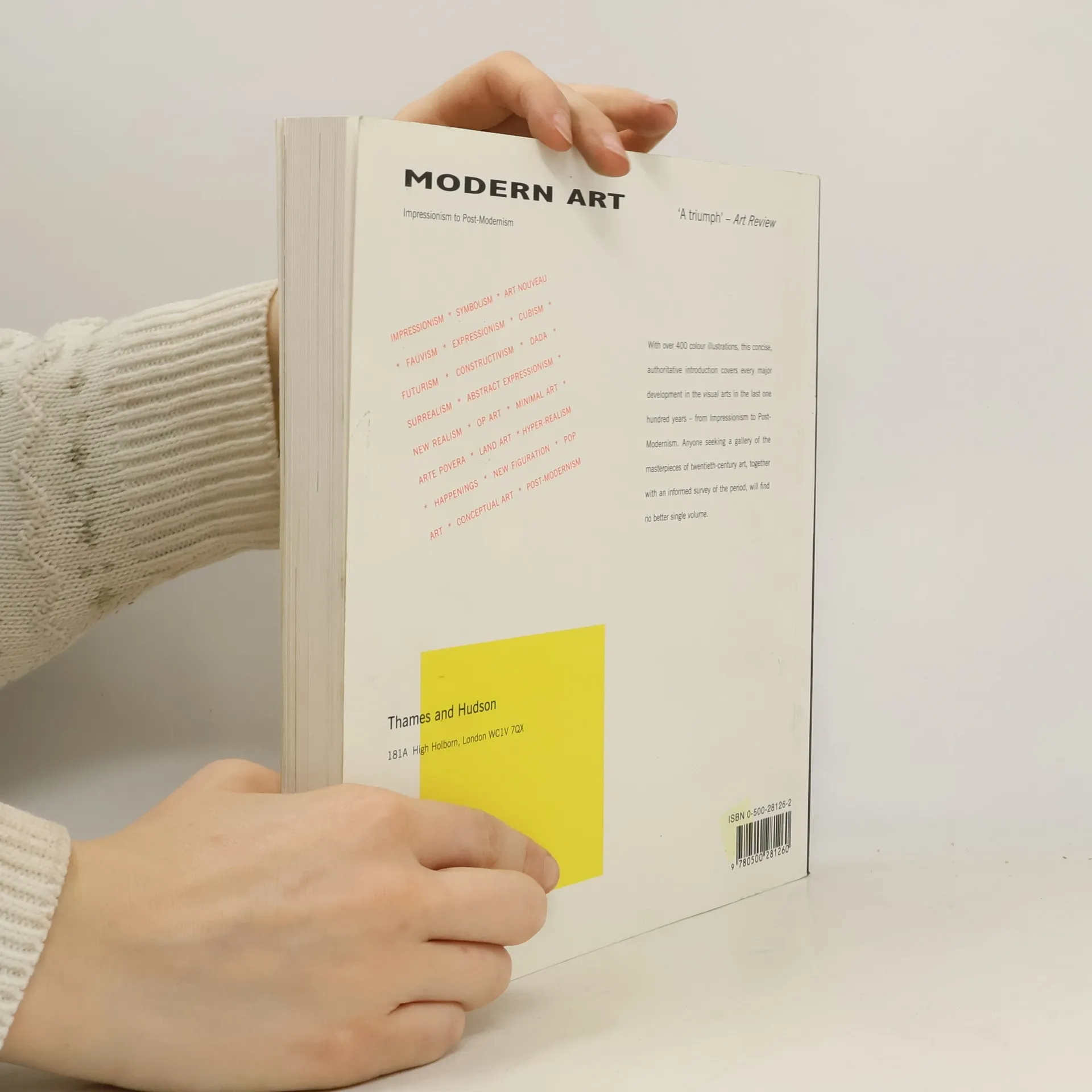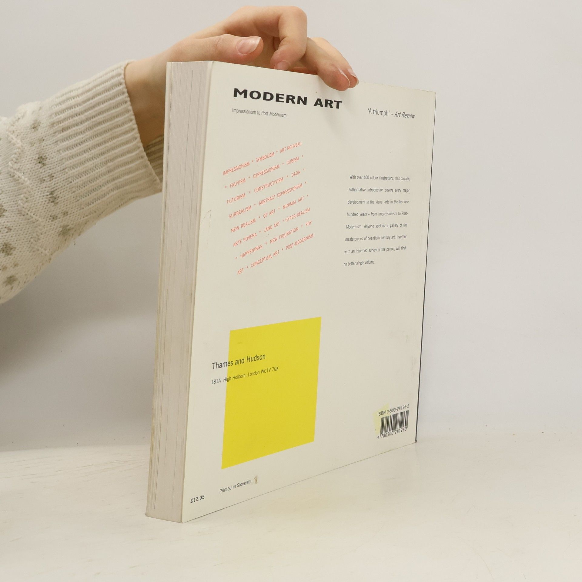 With over 400 color illustrations, this authoritative introduction covers every major development in the visual arts from Impressionism to Post-Modernism. Anyone seeking a gallery of the masterpieces of twentieth-century art, together with an informed survey of the period, will find no better single volume. Impressionism; Symbolism; Art Nouveau; Fauvism; Expressionism; Cubism; Futurism; Constructivism; Dada; Surrealism; Abstract Expressionism; New Realism; Op Art; Minimal Art; Arte Povera; Land Art; Hyper-realism; Happenings; New Figuration; Pop Art; Conceptual Art; Post-Modernism.