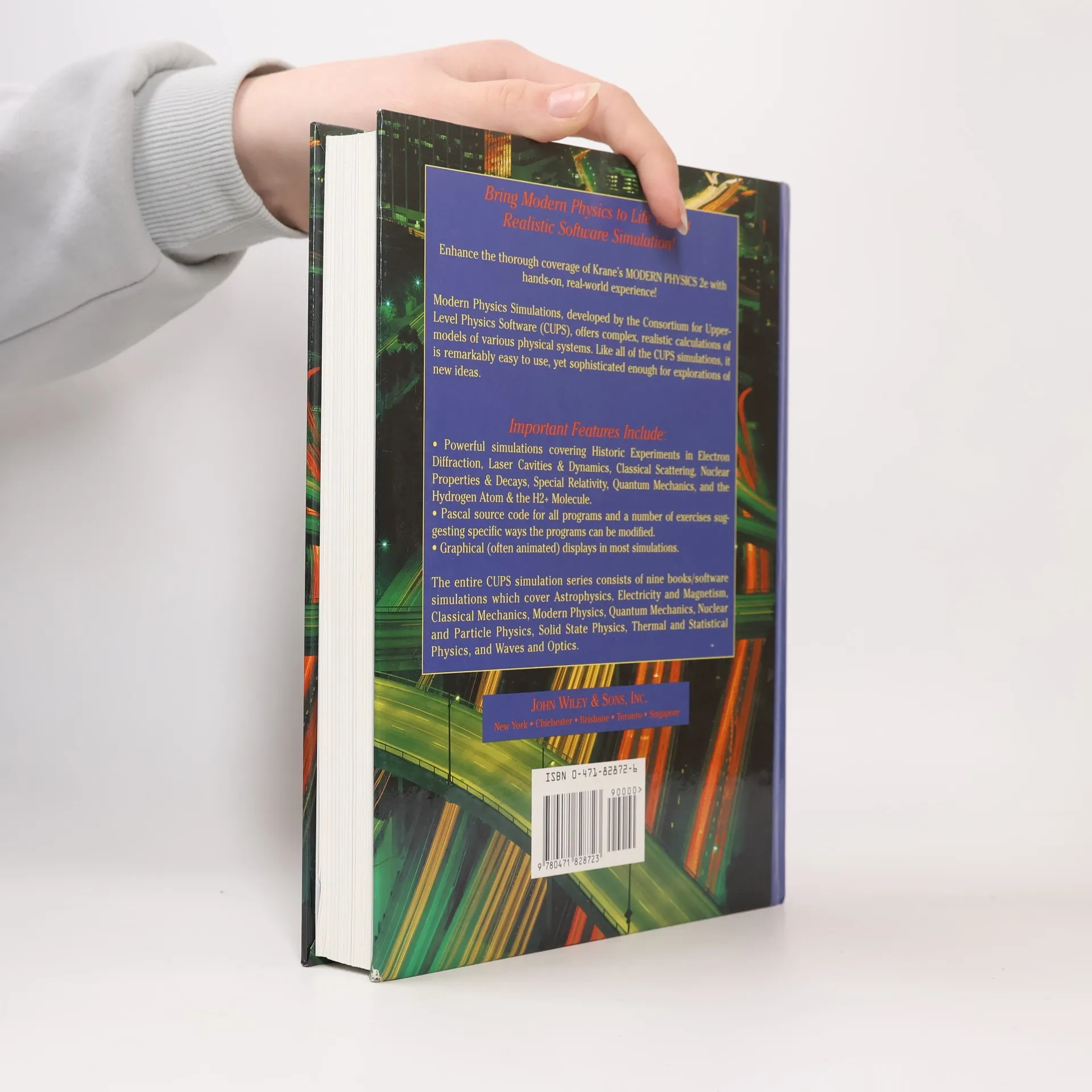 Bring Modern Physics to Life with a Realistic Software Simulation! Enhance the thorough coverage of Krane's Modern Physics 2e with hands-on, real-world experience! Modern Physics Simulations, developed by the Consortium for Upper-Level Physics Software (CUPS), offers complex, realistic calculations of models of various physical systems. Like all of the CUPS simulations, it is remarkably easy to use, yet sophisticated enough for explorations of new ideas. Important Features * Powerful simulations covering Historic Experiments in Electron Diffraction, Laser Cavities & Dynamics, Classical Scattering, Nuclear Properties & Decays, Special Relativity, Quantum Mechanics, and the Hydrogen Atom & the H2+ Molecule.* Pascal source code for all programs and a number of exercises suggesting specific ways the programs can be modified.* Graphical (often animated) displays in most simulations.The entire CUPS simulation series consists of nine books/software simulations which cover Astrophysics, Electricity and Magnetism, Classical Mechanics, Modern Physics, Quantum Mechanics, Nuclear and Particle Physics, Solid State Physics, Thermal and Statistical Physics, and Waves and Optics.