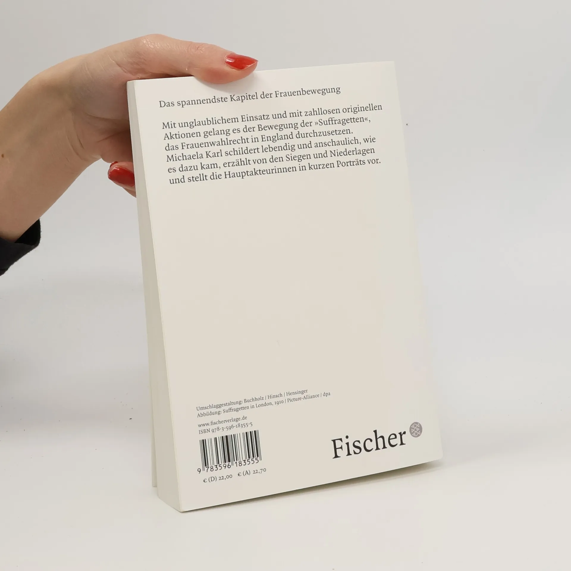 Das spannendste Kapitel der Frauenbewegung Mit unglaublichem Einsatz und mit zahllosen originellen Aktionen gelang es der Bewegung der "Suffragetten", das Frauenwahlrecht in England durchzusetzten. Michaela Karl schildert lebendig und anschaulich, wie es dazu kam, erzählt von den Siegen und Niederlagen und stellt die Hauptakteurinnen in kurzen Porträts vor. (Klappentext außen, Rückseite)