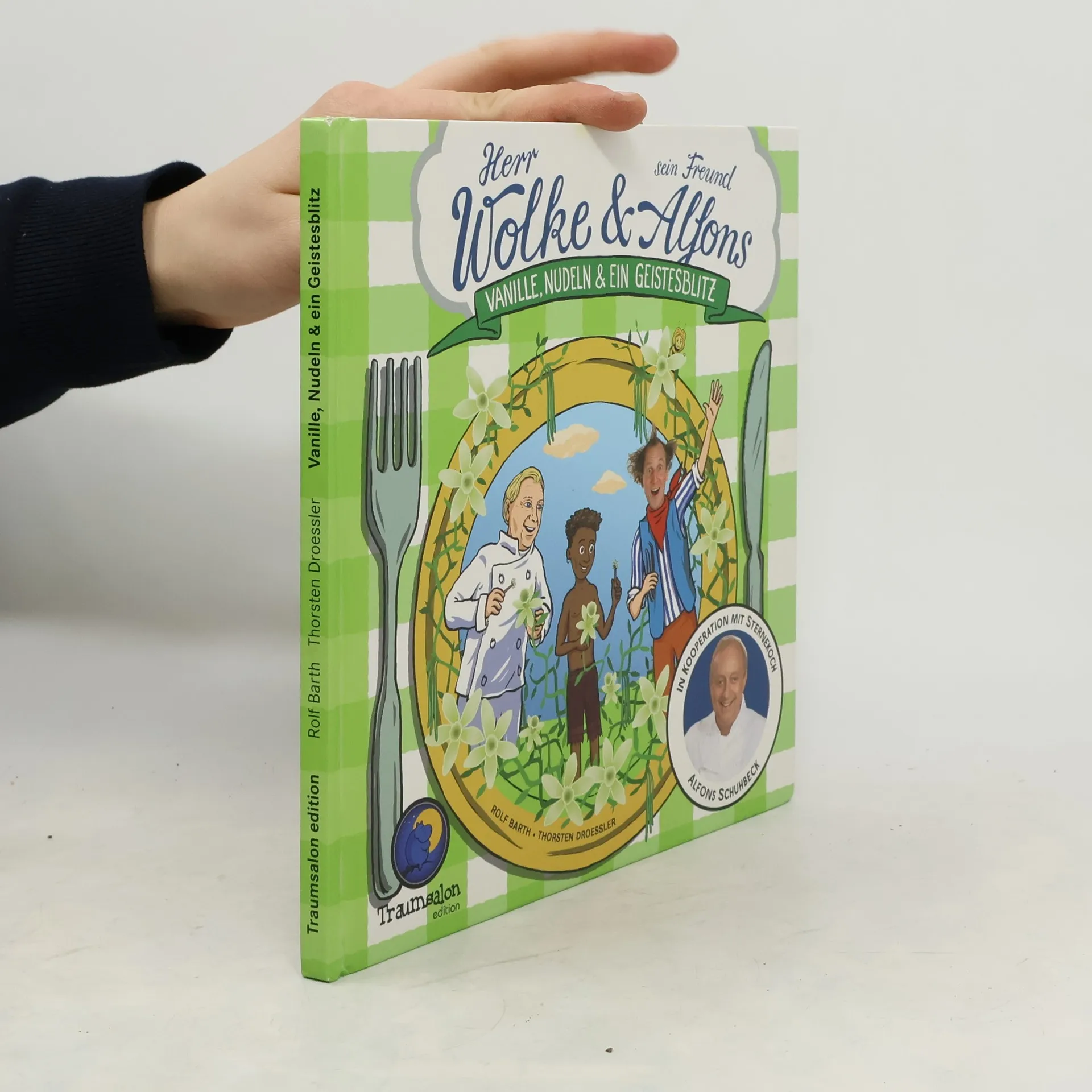 Im Herbst 2012 erscheint das 3. Abenteuer-Kochbuch aus der Reihe: „Herr Wolke und sein Freund Alfons“. Mit original Rezepten von Alfons Schuhbeck für ein 4-Gang-Vanille-Menü. Zum gemeinsamen Lesen Kochen Essen Genießen … und Abwaschen Worum geht es? Herr Wolke erwartet Besuch von seiner Oma, die er gerne mit einem 4-Gang Vanille-Menü überraschen möchte, gekocht von seinem Freund Alfons. Bevor Herr Wolke und Alfons die Oma Zuhause abholen, unternehmen sie eine abenteuerliche Reise, um zum Menü auch die Geschichte der Vanille servieren zu können. Auf ihrer Spur geht es nach Versailles auf das Schloss von Ludwig XIV. Und schließlich landen sie auf der Insel La Réunion bei Edmond Albius, einem armen Jungen, der schlauer war als alle Gelehrten seiner Zeit. Seinem genialen Geistesblitz ist es zu verdanken, dass die Vanille in Europa heimisch werden konnte. Am Ende bekommt Oma Wolke ihr Vanille-Menü, das sie gemeinsam mit dem Sternekoch Alfons (Schuhbeck) kochen darf. Die Leser sind dazu natürlich auch herzlich eingeladen.