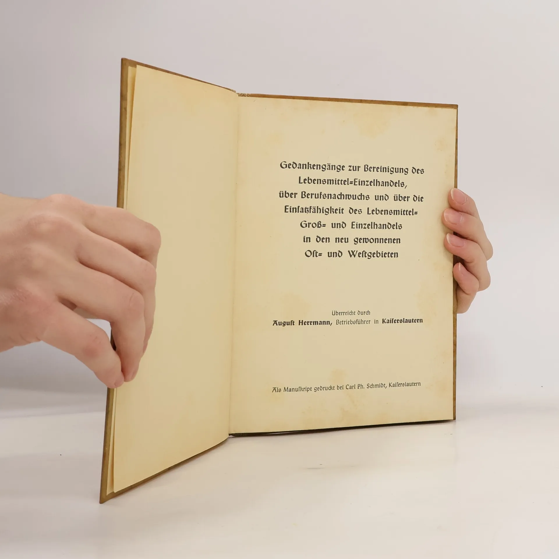 Gedankengänge zur Bereinigung des Lebensmittel-Einzelhandels, über Berufsnachwuchs und über die Einſatzfähigkeit des Lebensmittel-Groß und Einzelhandels in den neu gewonnenen Oft- und Westgebieten, August Herrmann