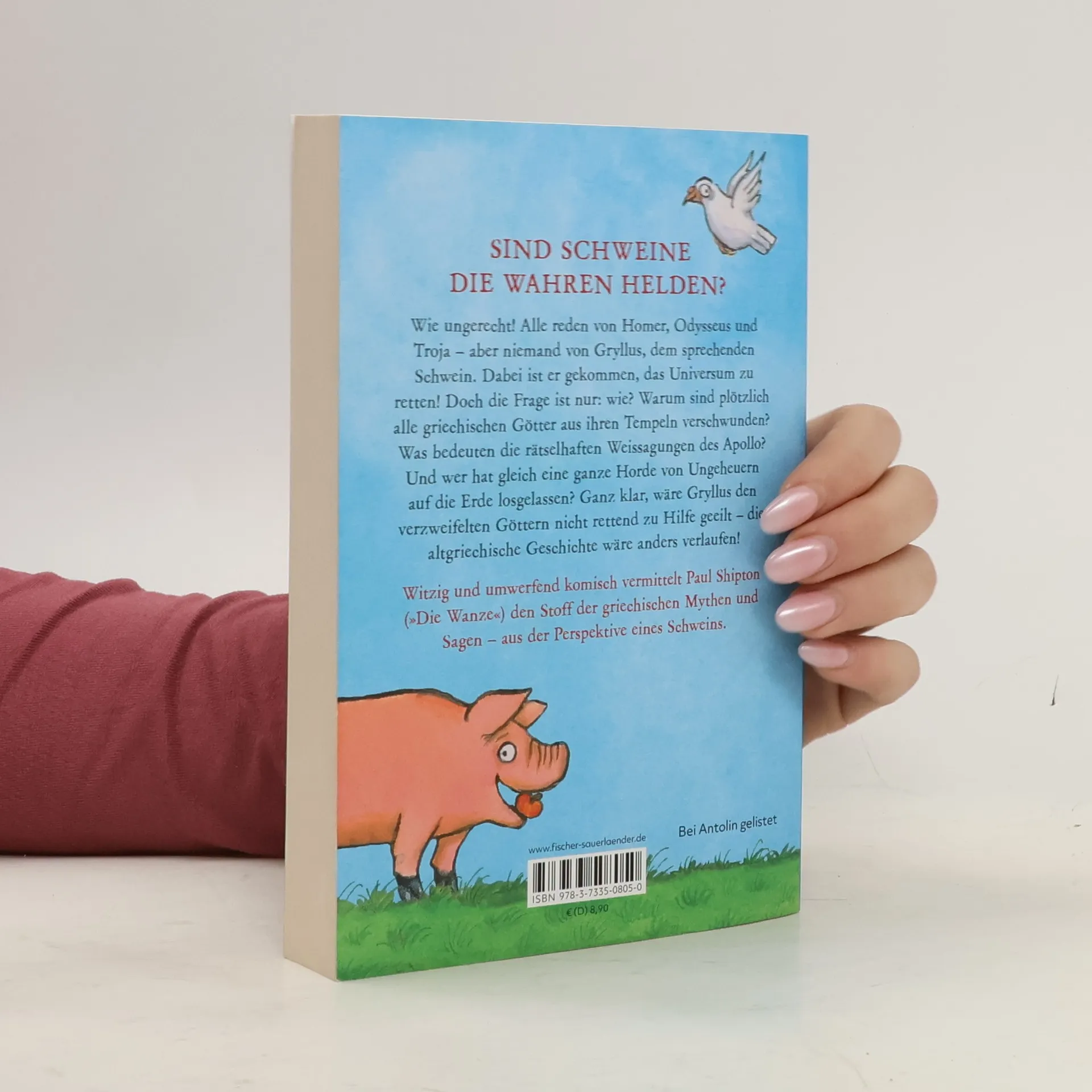 Lustiges Kinderbuch für Kinder ab 9 Jahren über die griechische Antike – frech, unverblümt und saukomisch! Stellt euch vor, ihr wart mal ein Mensch, wurdet aber zu einem Schwein verzaubert … Wie fühlt ihr euch? Richtig: sauwohl! Wie ungerecht! Alle reden von Homer, Odysseus und Troja – aber niemand von Gryllus, dem sprechenden Schwein. Dabei ist er gekommen, um das Universum zu retten! Doch die Frage ist nur: wie? Warum sind plötzlich alle griechischen Götter aus ihren Tempeln verschwunden? Was bedeuten die rätselhaften Weissagungen des Apollo? Und wer hat gleich eine ganze Horde von Ungeheuern auf die Erde losgelassen? Ganz klar, wäre Gryllus den verzweifelten Göttern nicht rettend zu Hilfe geeilt – die altgriechische Geschichte wäre anders verlaufen! Witzig und umwerfend komisch vermittelt Paul Shipton (»Die Wanze«) Kindern ab zehn Jahren den Stoff der griechischen Mythen und Sagen – aus der Perspektive eines Schweins. Stimmen zur englischen Originalausgabe: »Eine rasante Flut von Wortspielen, Gags und Sprüchen. Ein abenteuerlicher Volltreffer.« Eoin Colfer, Autor von »Artemis Foul« »Shiptons Buch ist ein Triumph. Die Witze knistern wie gut gegrillter Speck, die Handlung ist saftig, und das ganze Buch vermittelt mehr über das Leben im antiken Griechenland als ein Dutzend Lehrbücher.« The Times »Urkomisch – für alle, die die alten Mythen kennen, genauso wie für die, die sie nicht kennen.« Booklist