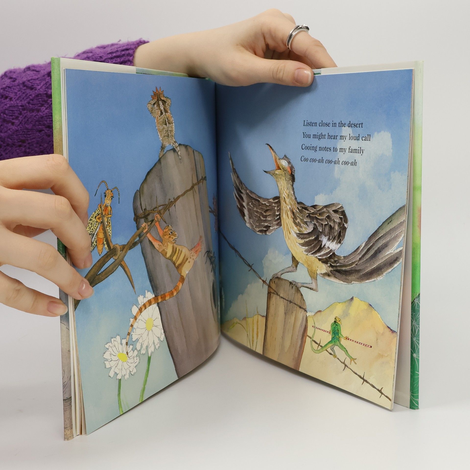 Roadrunners are speedy, fearless, and when they do take time out from ruling the desert scrublands and meadows they call home, they enjoy a tasty snack of...lizards? It's true! The aptly titled "Lizards for Lunch: A Roadrunner's Tale" provides you, the reader, with a glimpse of the world as it is known to the speedy roadrunner. Far from the cartoon character many people are familiar with, the life and habits (eating and otherwise) of the roadrunner are accurately depicted in this book through a witty rhyme and fantastically vibrant illustrations. You will see something new each time you adventure into this book and the roadrunner's world. And you will gain an appreciation for not having the uncertain life of a lizard, or as the roadrunner would see you--as lunch!