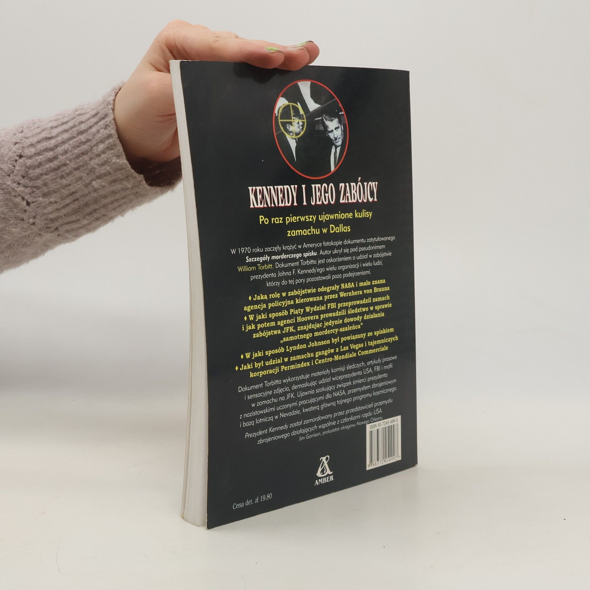 Ujawnione kulisy zamachu w Dallas W 1970 roku zaczęły krążyć w Ameryce fotokopie dokumentu zatytułowanego Nomenclature of Assassinati on Cabal (Szczegóły morderczego spisku). Autor ukrył się pod pseudonimem William Torbitt . Dokument Torbitta oskarża o udział w zabójstwie prezydenta Johna F. Kennedy’ego organizacje i ludzi, którzy do tej pory pozostawali poza podejrzeniami. Jaką rolę w zabójstwie odegrały NASA i tajna agencja kierowana przez Wernera von Brauna? Czy za zamachem stał elitarny Piąty Wydział FBI i czy agenci Hoovera świadomie kierowali śledztwo na trop „samotnego mordercy- szaleńca”? Czy wiceprezydent Lyndon Johnson był powiązany ze spiskiem? Czy na śmierci prezydenta skorzystałyby gangi z Las Vegas i tajemnicze korporacje? Dokument Torbitta odpowiada na te pytania, demaskując udział w zamachu na JFK wiceprezydenta, FBI, mafii, NASA i nazistowskich uczonych pracujących nad tajnym programem kosmicznym. Czy dokument Torbitta mówi prawdę? Czy za zabójstwem prezydenta kryje się nierozszyfrowany do dziś niewyobrażalny spisek?