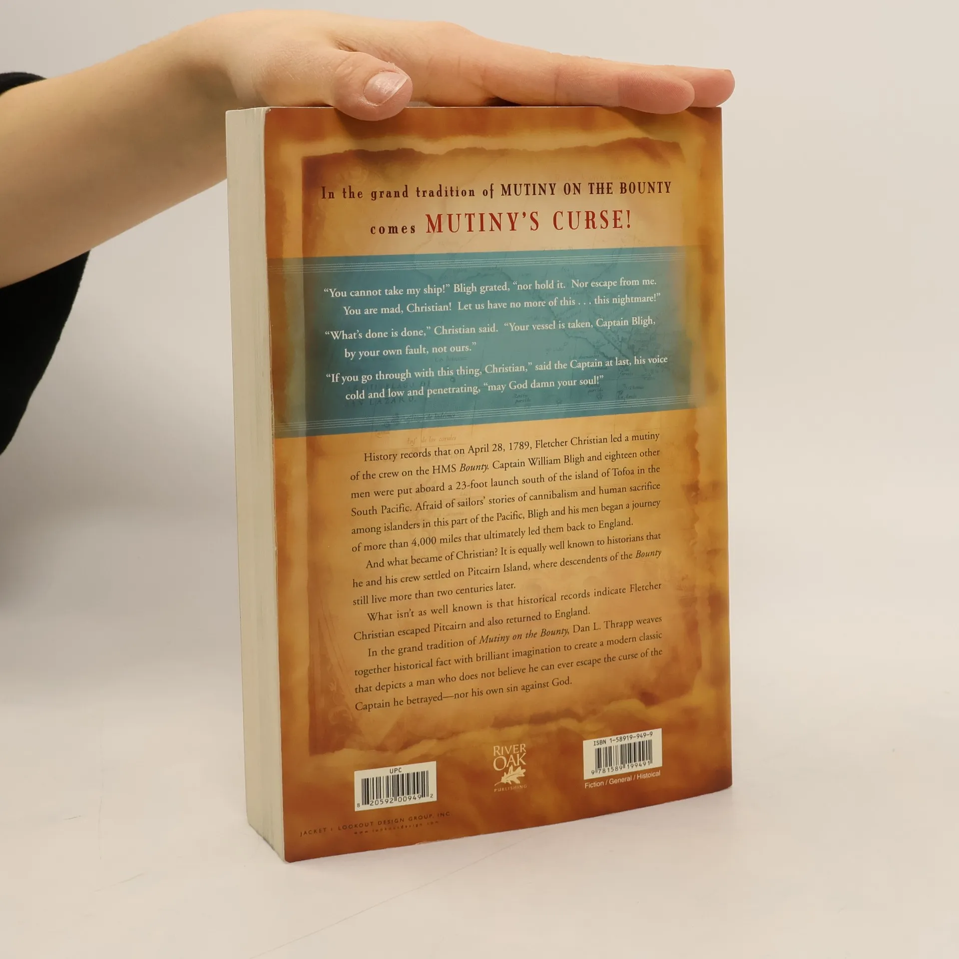 Mutiny's Curse begins where Mutiny On the Bounty left off! "If you go through with this thing, Christian," said Captain Bligh at last, his voice cold and low and penetrating, "may God damn your soul!" History records that on April 28, 1789, Fletcher Christian led a mutiny of the crew of the H.M.S. Bounty. Captain William Bligh and seventeen other men were put aboard a 16-foot rowboat south of the island of Tofoa in the South Pacific. Afraid of stories and legends of cannibalism and human sacrifice among islanders in this part of the Pacific, Bligh and his men began a journey of more than 4,000 miles that ultimately led them back to England. And what became of Christian? It is equally well known to historians that he and his crew settled on Pitcairn Island, where descendents of the Bounty still live more than two centuries later. What isn't as well known is that historical records indicate that Fletcher Christian escaped Pitcairn and also returned to England. His journeys bring him to the end of himself, where he must decide who will be captain of his soul. In the grand tradition of Mutiny on the Bounty, Dan Thrapp weaves together historical fact with brilliant imagination to create a modern classic that portrays a man who does not believe he can ever escape the curse of the Captain he betrayed-nor his own sin against God.