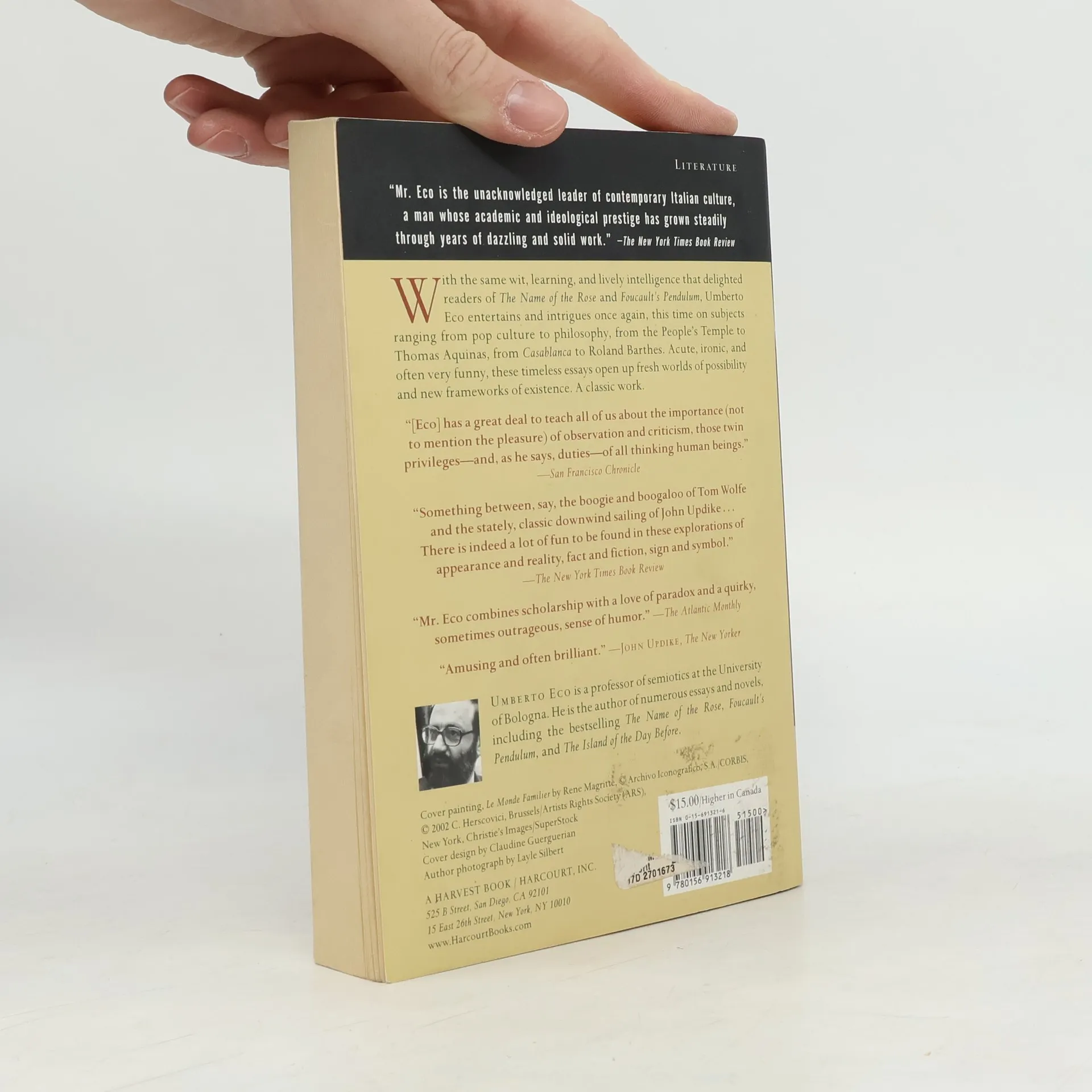 Eco displays in these essays the same wit, learning, and lively intelligence that delighted readers of The Name of the Rose and Foucault's Pendulum. His range is wide, and his insights are acute, frequently ironic, and often downright funny. Translated by William Weaver. A Helen and Kurt Wolff Book