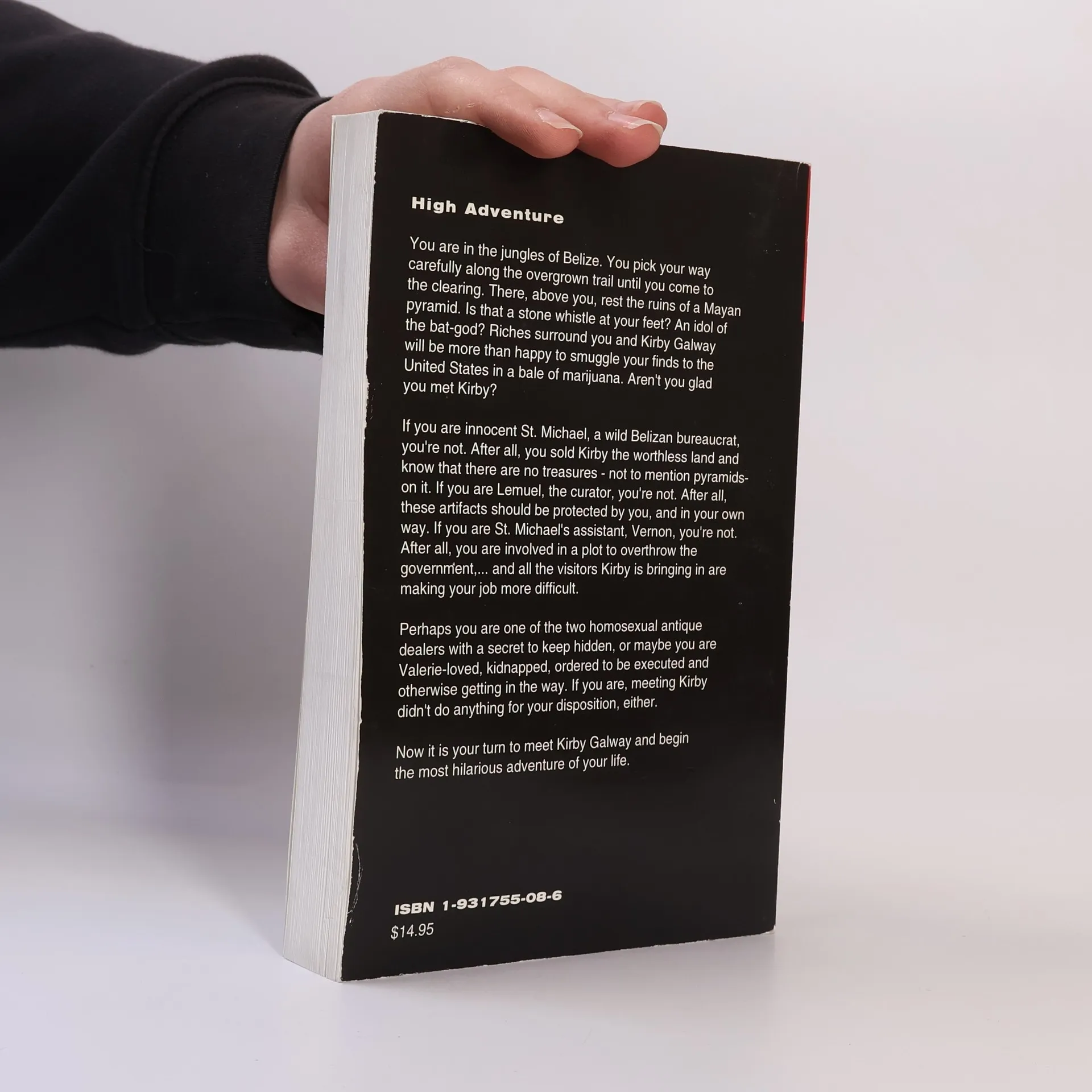 You are in the jungles of Belize. You pick your way carefully along the overgrown trail until you come to the clearing. There, above you, rest the ruins of a Mayan pyramid. Is that a stone whistle at your feet? An idol of a bat- god? Riches surround you and Kirby Galaway will be more than happy to smuggle your finds up to the United States in a bale of marijuana. Aren't you glad you met Kirby? ..... Now it is your turn to meet Kirby Galaway and begin the most hilarious adventure of your life.