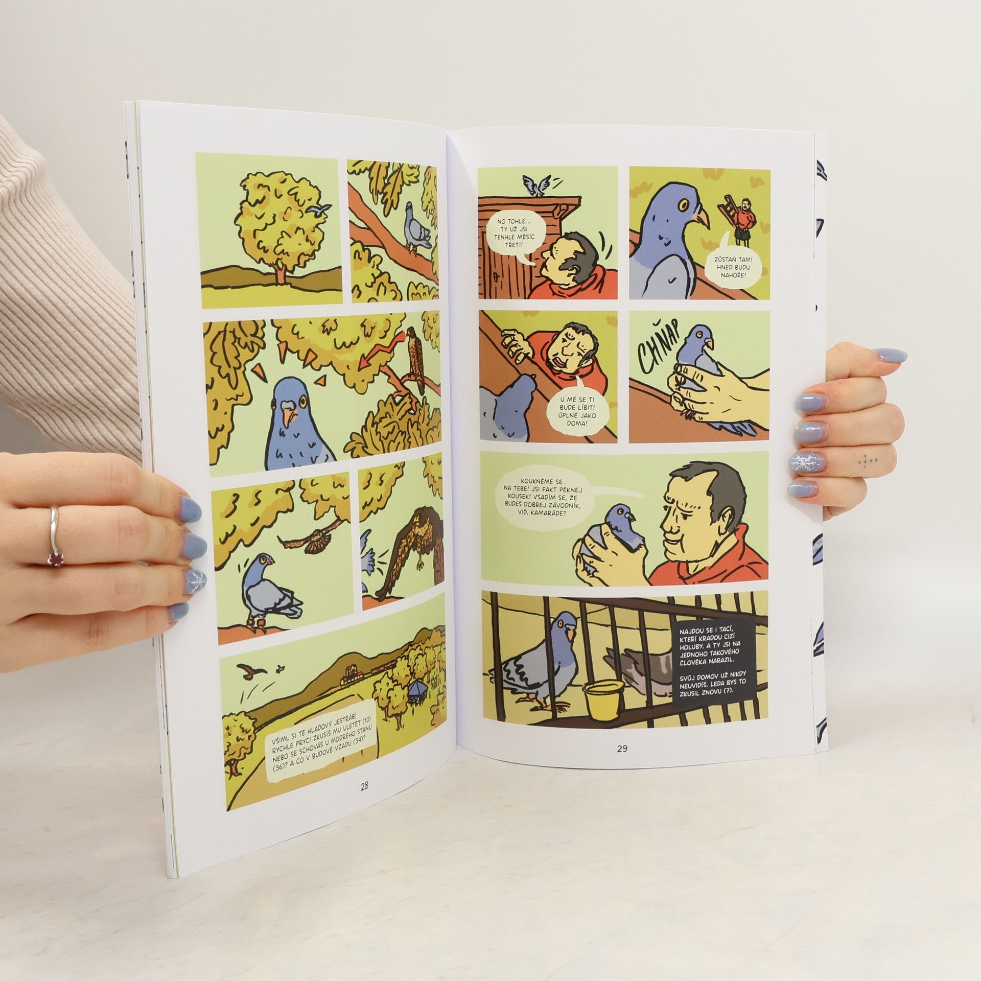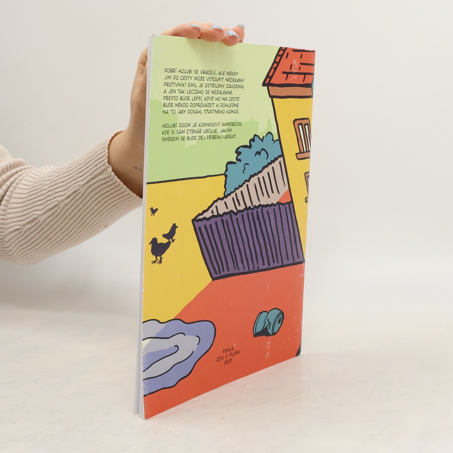 Diplomová práce v podobě komiksového gamebooku, ve kterém se čtenář ujímá role závodícího holuba, který se stane obětí střetu s dronem. Najde cestu zpět domů?