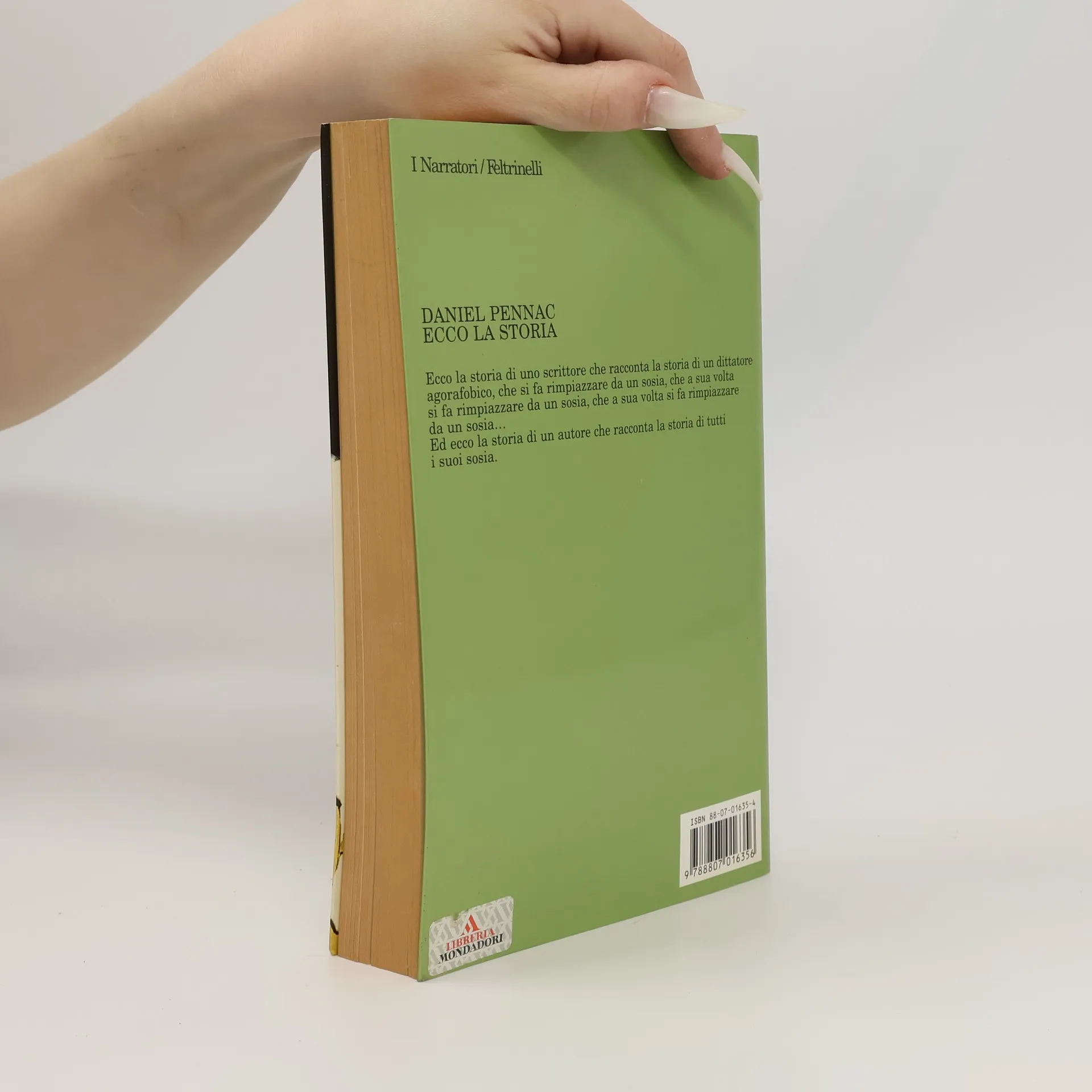 Ecco la storia è l'unione di più storie, alcune inventate, alcune vere, che nel loro intrecciarsi cercano di dar conto del processo creativo. Così, la scelta di un dittatore fittizio di assumere un sosia s'interseca con i diversi ruoli che lo scrittore assume mentre crea una storia. E un personaggio inventato può lentamente fluire verso una persona reale (e viceversa), che regalerà dei tratti al personaggio; e il personaggio, a sua volta, si modificherà ancora in questo continuo, inevitabile incrocio tra realtà e fantasia. Dal tema del sosia a quello del cinema, il libro è una riflessione sui "ruoli", sulla vita come gioco di maschere e come vano inseguimento di un'identità.