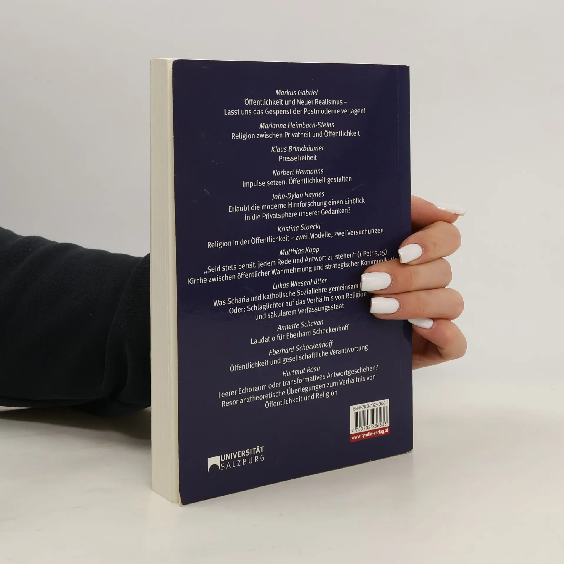 Verständigung in Zeiten von social media und „Lügenpresse“-Vorwürfen Im Jahr 2017 widmete sich die Salzburger Hochschulwoche dem Thema mediale und nicht-mediale Öffentlichkeiten. Unsere Identitäten, Geschichten und Diskurse sind wesentlich von den Öffentlichkeiten geprägt, in denen wir sie konstruieren, erzählen und argumentieren. Wer wir sind und sein wollen, welche Argumente triftig sind und welche nicht – das sind individuelle und gesellschaftliche Fragen, die durch mediale und nicht-mediale Öffentlichkeiten mitbestimmt werden. Diese Öffentlichkeiten sind in vielfältigen Transformationen begriffen: Die Grenze zwischen öffentlich und privat verschwimmt in den Zeiten der social media in neuer Weise. Das gedruckte Wort als Leitmedium gesellschaftlicher (Selbst-)Verständigung gerät durch die viel zitierte Bilderflut aus dem Netz unter Druck. Niemals war es leichter, vom bloßen Medienkonsumenten zum -produzenten zu werden, gleichzeitig überblicken wir die Möglichkeiten und Gefahren neuer Medientechnologien noch nicht. Das Internet erschließt uns zwar neue Welten, aber seine filter bubbles separieren uns zugleich. Öffentliche Debatten werden weltweit von Populisten besetzt, während die „Lügenpresse“-Vorwürfe auf den fragilen Zusammenhang von demokratischen Prozessen und journalistischen Kulturen aufmerksam machen. All diese Beobachtungen lassen sich in den Kontext einer „entgleisenden Moderne“ (Habermas) einsortieren. Was tragen die Versprechen von Partizipation, Selbstbestimmung und Rationalität, die das Konzept „Öffentlichkeit“ einst prägten, heute noch aus? Und was bedeuten all diese Transformationen für Religion, die in der Moderne stets zwischen öffentlicher Präsenz und privater Praxis schillerte? Mit Beiträgen von Klaus Birnbäumer, Hamburg, Markus Gabriel, Bonn, John-Dylan Haynes, Berlin, Marianne Heimbach-Steins, Münster, Norbert Hermanns, Aachen, Hartmut Rosa, Jena, Kristina Stoeckl, Innsbruck, u. a.