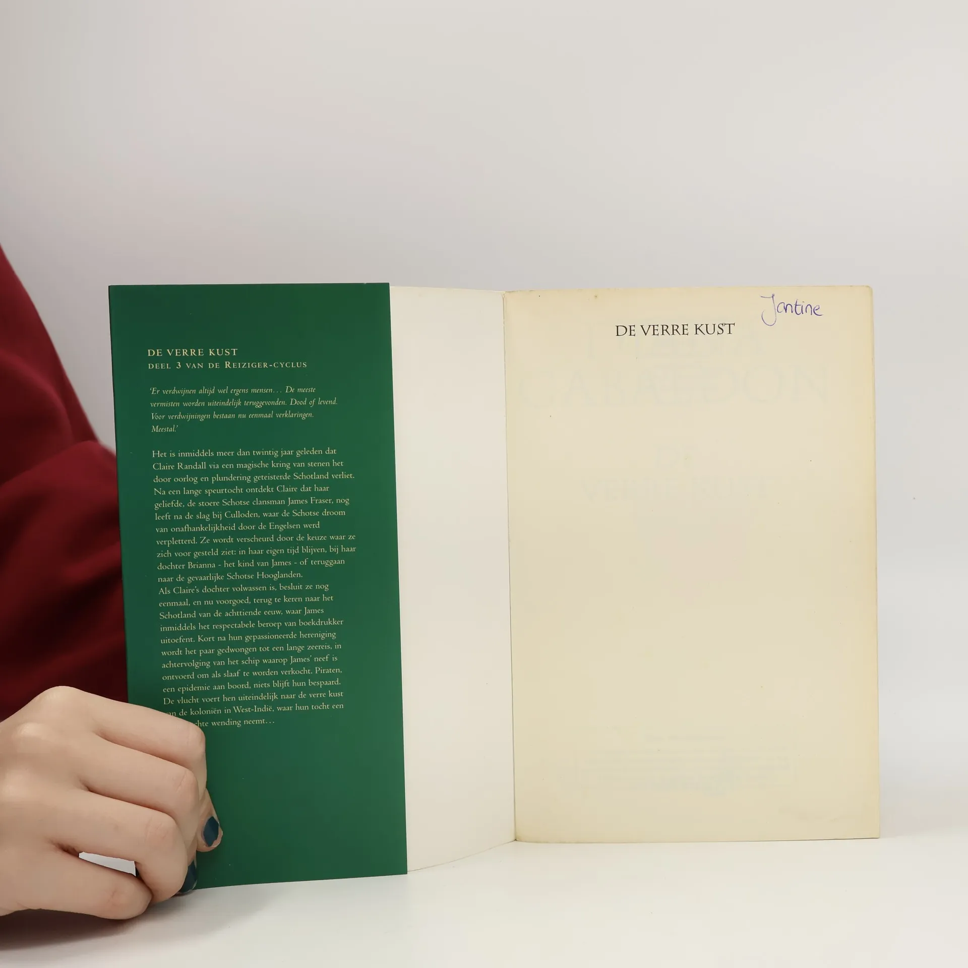 De indrukwekkende verbeeldingskracht van Diana Gabaldon heeft het hart gestolen van vele miljoenen fans over de hele wereld. In de Reiziger-cyclus vertelt ze het verhaal van de verpleegster Claire Randall, die tijdens een vakantie via een magische stenenkring in het Schotland van de achttiende eeuw belandt. Hier ontmoet ze haar grote liefde, de clansman James Fraser, een van de leiders van de Schotse opstand tegen de Engelsen. Dit is het begin van een wervelende cyclus, vol passie en avontuur, die de lezer meevoert naar het Franse hof in Parijs, en van West-Indië naar de Nieuwe Wereld. Het is meer dan twintig jaar geleden dat Claire Randall via een magische kring van stenen het door oorlog en plundering geteisterde Schotland verliet. Na een lange speurtocht ontdekt Claire dat haar geliefde, de stoere Schotse clansman James Fraser, nog leeft na de slag bij Culloden, waar de Schotse droom van onafhankelijkheid door de Engelsen werd verpletterd. Ze wordt verscheurd door de keuze waar ze zich voor gesteld ziet: in haar eigen tijd blijven, bij haar dochter Brianna - het kind van James - of teruggaan naar de gevaarlijke Schotse Hooglanden. Als Claire´s dochter volwassen is, besluit ze nog eenmaal, en nu voorgoed, terug te keren naar het Schotland van de achttiende eeuw, waar James inmiddels het respectabele beroep van boekdrukker uitoefent. Kort na hun gepassioneerde hereniging wordt het paar gedwongen tot een lange zeereis, in achtervolging van het schip waarop James´ neef is ontvoerd om als slaaf te worden verkocht. Piraten, een epidemie aan boord, niets blijft hun bespaard. De vlucht voert hen uiteindelijk naar de verre kust van de koloniën in West-Indië, war hun tocht een onverwachte wending neemt...