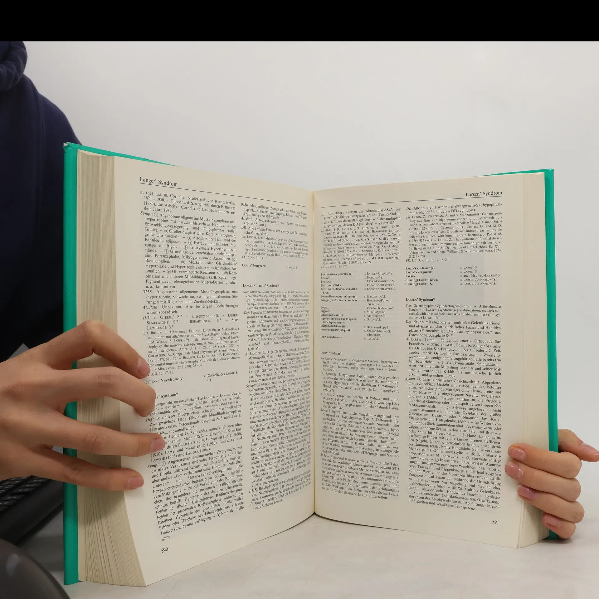 Syndrome discussions contain synonym, definition, symptoms, minimal criteria for diagnosis, etiology and pathogenesis, differential diagnosis, and references.