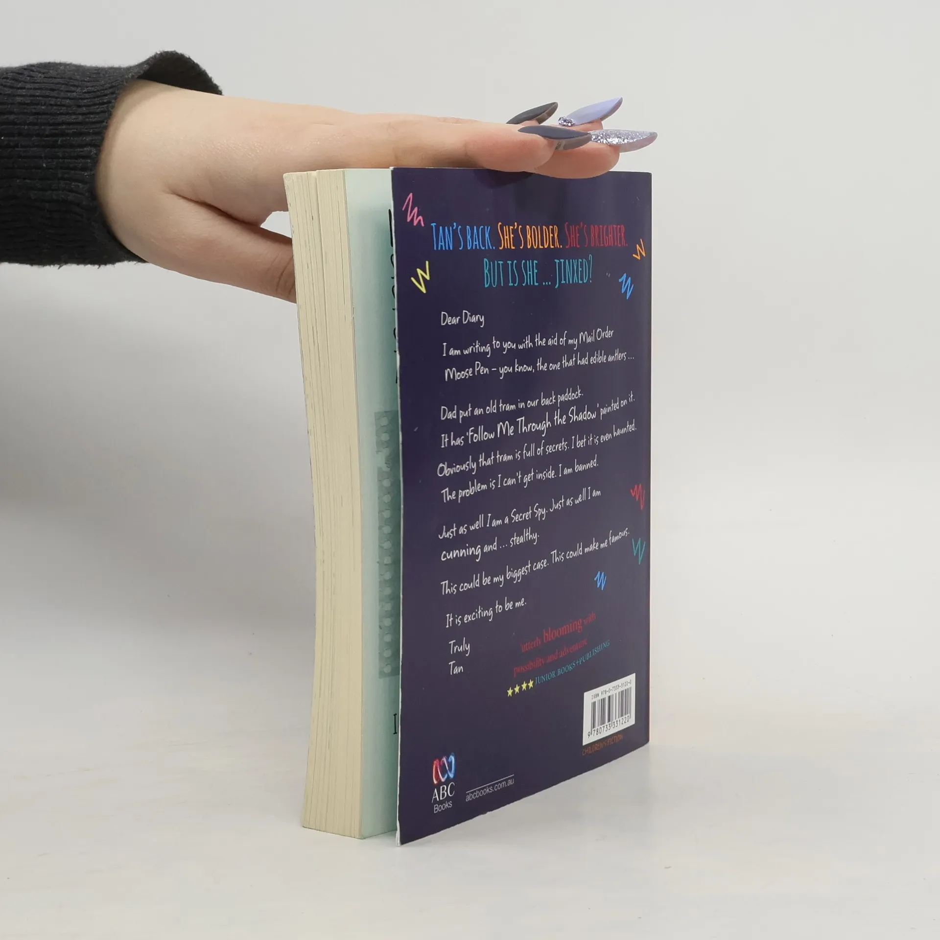 Dear DiaryI am writing to you with the aid of my Mail Order Moose Pen - you know, the one that had edible antlers ...Dad put an old tram in our back paddock. It has Follow Me Through the Shadow painted on it. Obviously that tram is full of secrets. I bet it is even haunted. The problem is I can′t get inside. I am banned.Just as well I am a Secret Spy. Just as well I am cunning and ... stealthy.This could be my biggest case. This could make me famous.It is exciting to be me.TrulyTanAges: 8-12