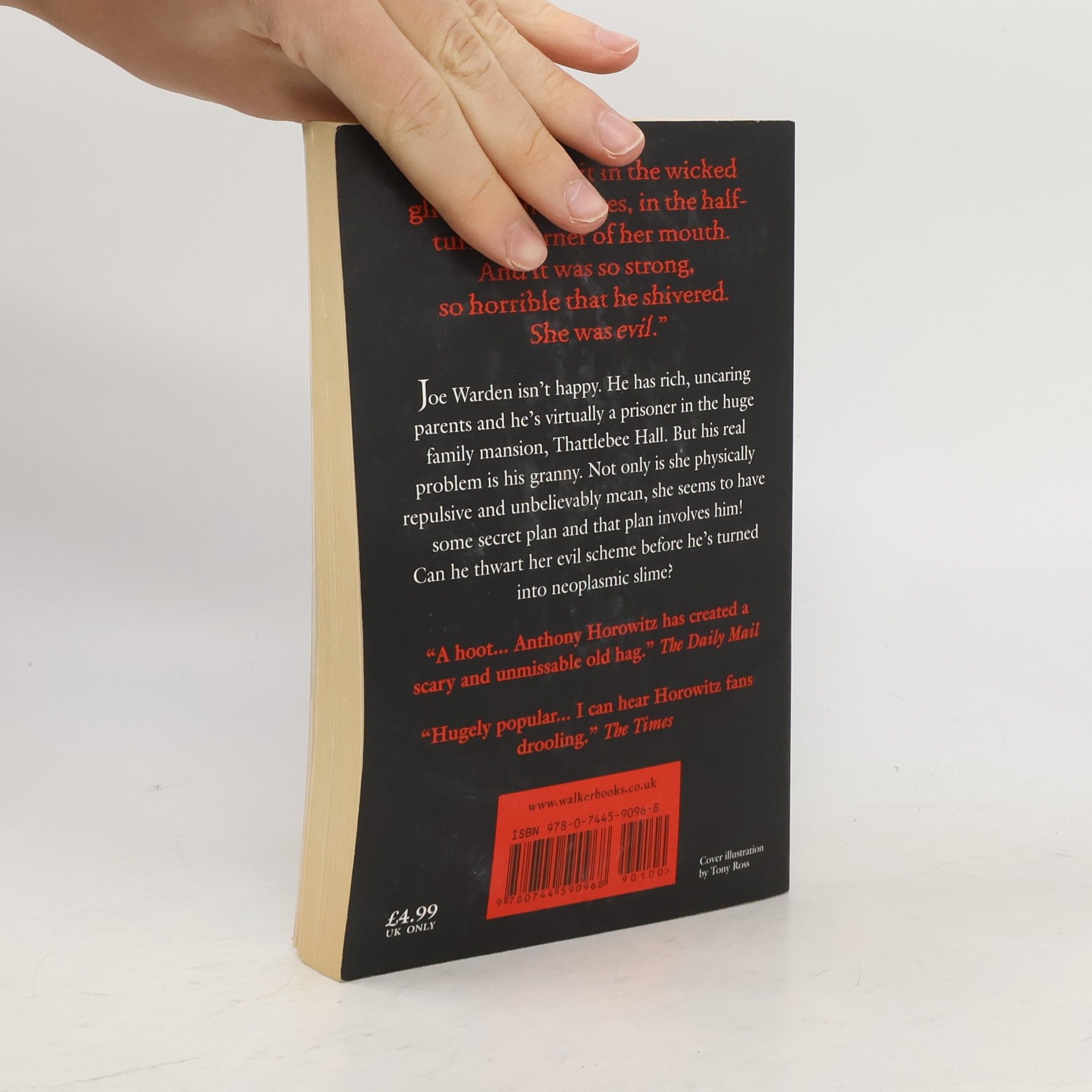 Twelve-year-old Joe Warden isn’t happy. Sure, he’s rich, but his parents don’t care about him. His grandmother should make everything better, except that Joe’s granny is a nightmare. She’s not just physically repulsive, she’s horribly mean. Everyone thinks she’s just a dotty old woman, but Joe knows the truth. He’s seen behind her mask and glimpsed the wicked glimmer in her eyes—she is pure evil. And now she’s out to get Joe, unless he can stop her and her band of nasty grannies first.Anthony Horowitz, creator of the bestselling Alex Rider series has written a wickedly funny story, with hilarious illustrations by Tony Ross. Twelve-year-old Joe has an unbelievably evil Granny. Not only is Granny physically repulsive and horribly mean, but she also has the look in her eye of a predatory crocodile. Soon Joe starts to suspect that she has unpleasant designs on him. But what are they and how can he foil them?