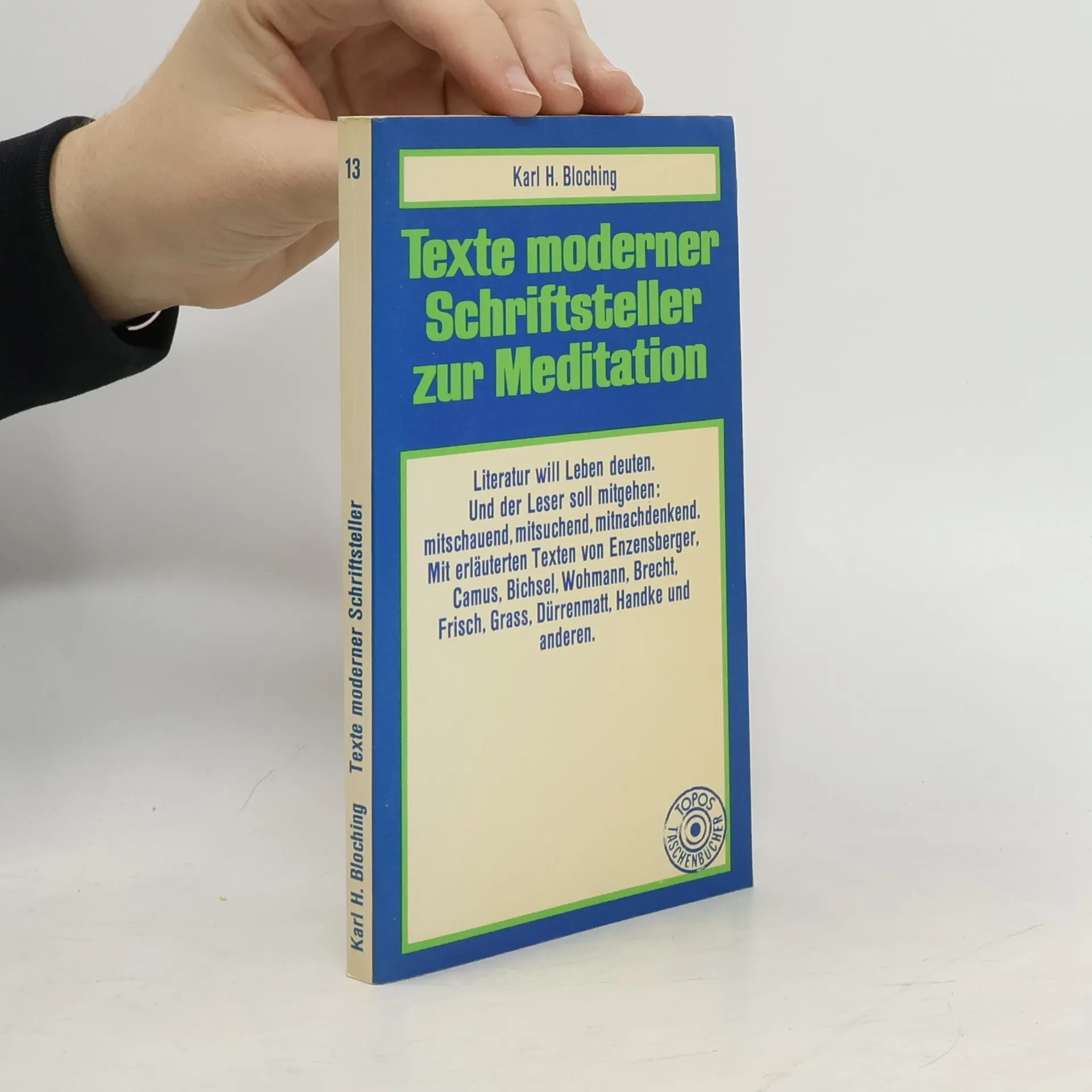 Texte moderner Schriftsteller zur Meditation, Karl Heinz Bloching, Hans Magnus Enzensberger, Albert Camus, Peter Bichsel, Gabriele Wohnmann, Bertolt Brecht, Max Frisch, Günter Grass, Friedrich Dürrenmatt, Peter Handke