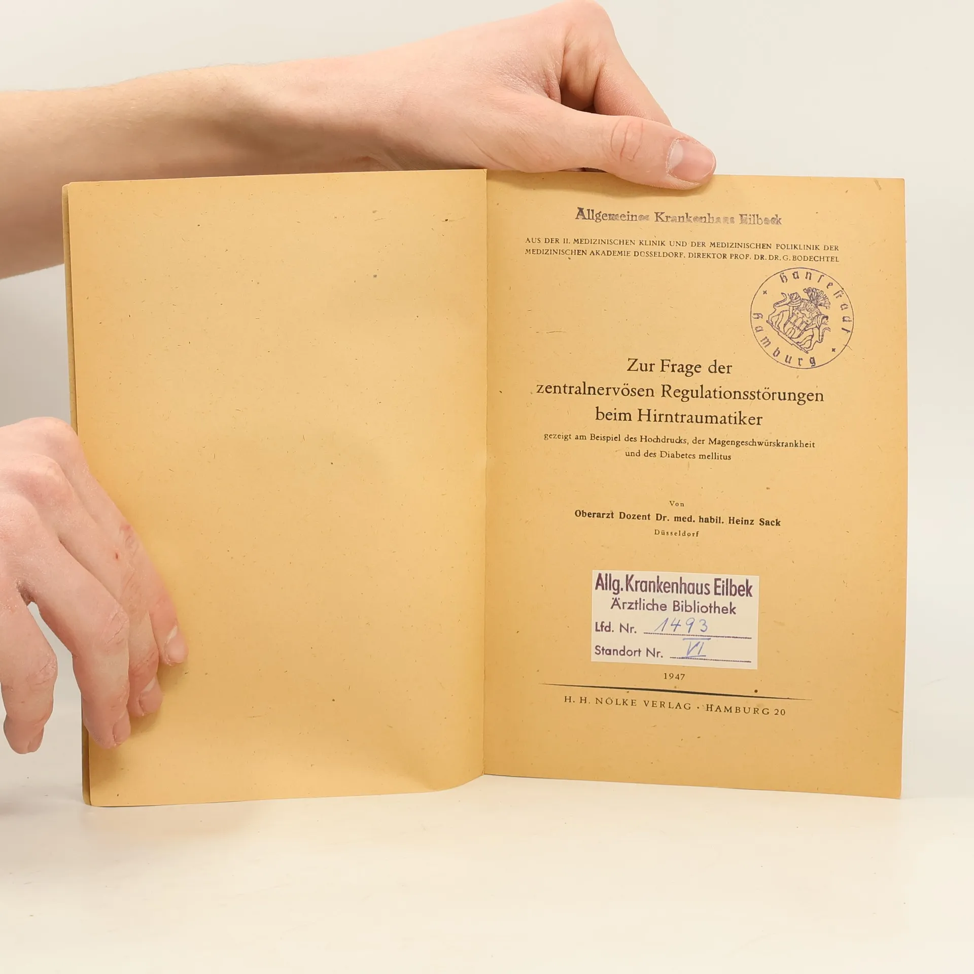 Zur Frage der zentralnervösen Regulationsstörungen beim Hirntraumatiker, Heinz Sack
