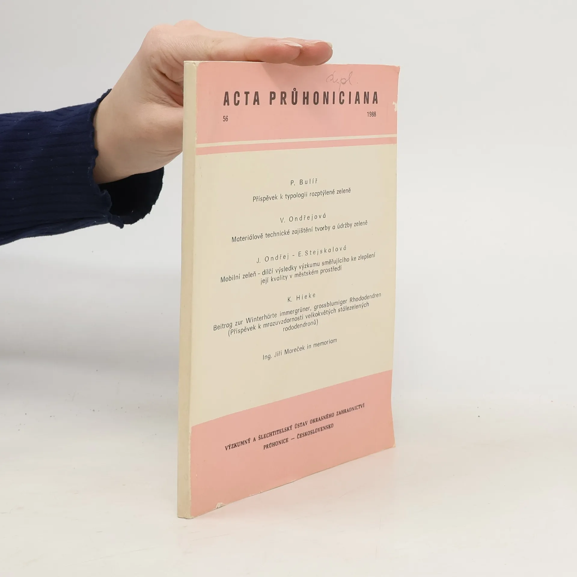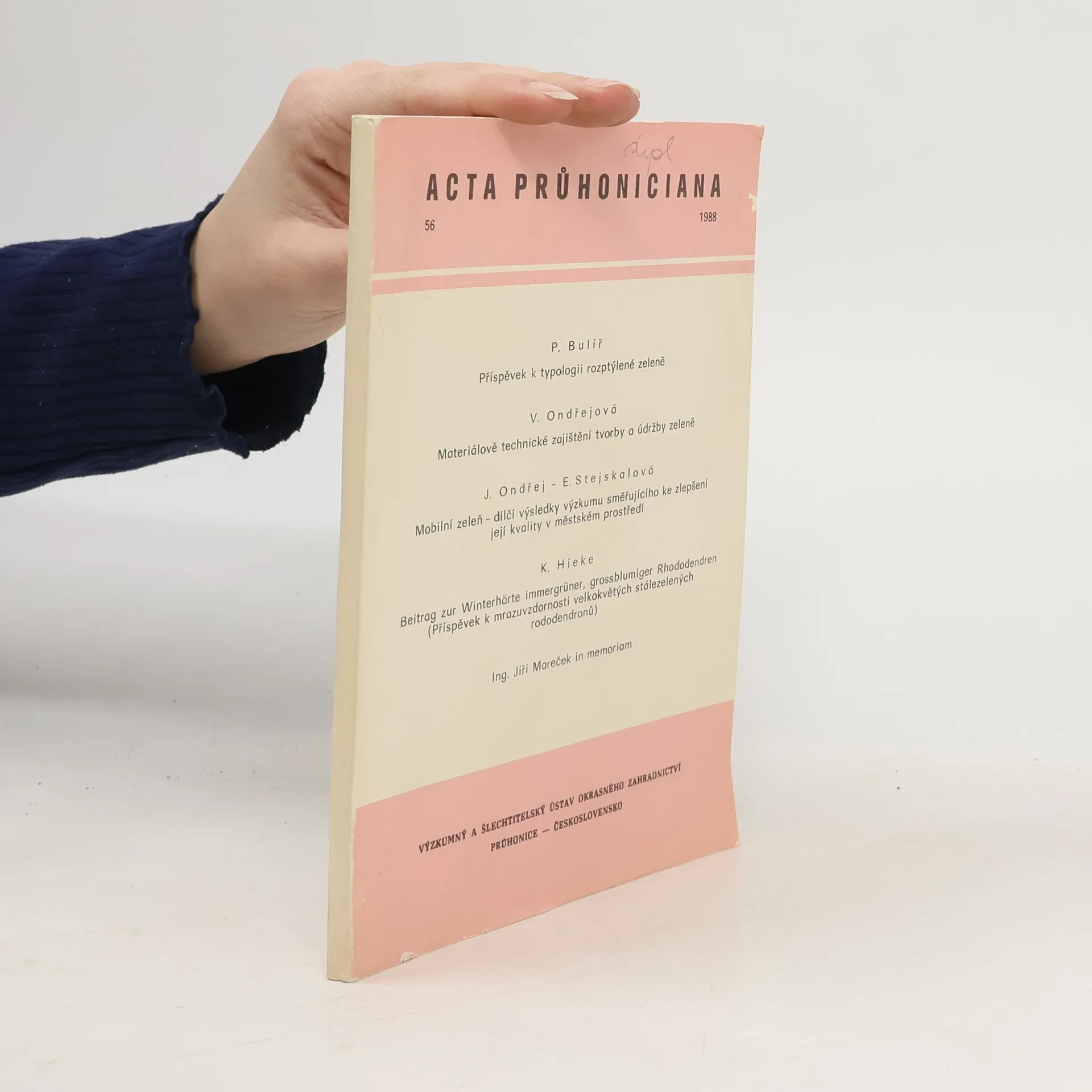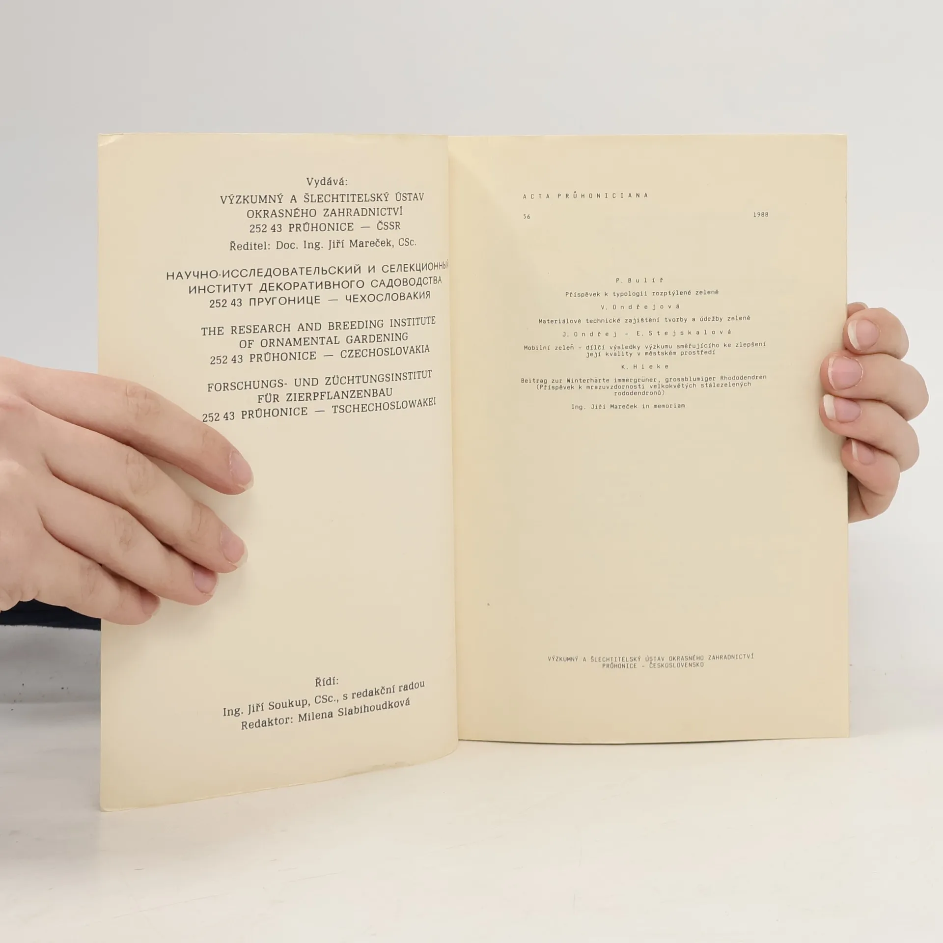 Acta Průhoniciana 56/1988, P. Bulíř, V. Ondřejová, J. Ondřej, K. Hieke, E. Stejskalová