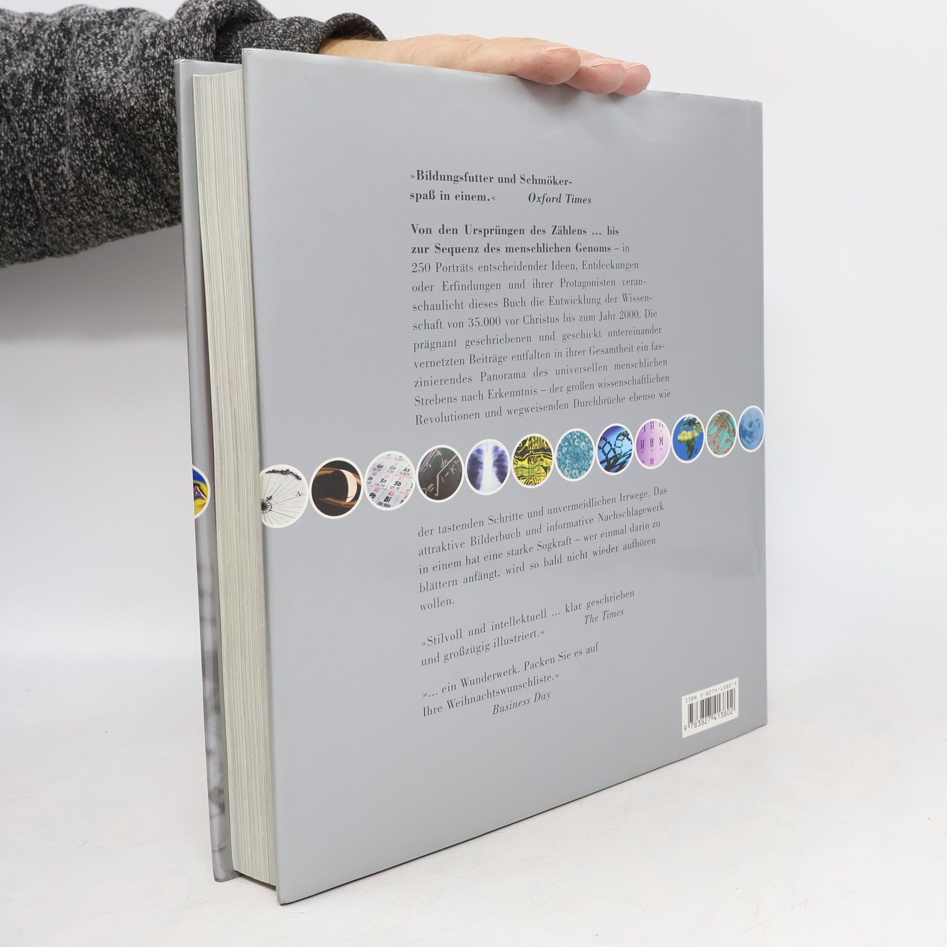 Das "Science Book" ist die erste leicht zugangliche und uppig illustrierte Geschichte der (Natur-)Wissenschaft. Die 250 in Text und Bild vorgestellten Meilensteine aus der Geschichte der wissenschaftlichen Entdeckungen vermitteln ein einzigartiges Panorama der Erforschung und Entschlusselung unseres Universums. Die Lekture verschafft eine verbesserte Wertschatzung, wie das wissenschaftliche Denken nicht nur unser alltagliches Leben verandert hat, sondern auch unsere tiefste Einschatzung, wer wir sind, wie die Welt entstanden ist und welches Schicksal ihr und uns zukommt. Das chronologisch gegliederte, fundierte und intern stark vernetzte Buch stellt eine elegante, hoch informative und visuell attraktive Feier der bemerkenswerten Errungenschaften der Wissenschaft uber die Jahrhunderte hinweg dar, ob es nun die Biologie, Physik, Astronomie, Kosmologie, Evolution, Geologie, Medizin oder Mathematik betrifft. Jeder Eintrag geht uber zwei Seiten, mit einem klaren Text und einem faszinierenden Bild zu der jeweiligen Entdeckung, Erfindung, Idee oder Begebenheit. Und eingestreut finden sich im ganzen Buch Essays von acht der weltweit fuhrenden Wissenschaftsvermittler, die bestimmte intellektuelle Leistungen wurdigen, welche aus allen anderen herausragen. Vom bescheidenen Konzept der "Null" bis zum Beweis von Fermats letztem Satz, von der Idee des heliozentrischen Universums bis zu den ersten Schritten des Menschen auf dem Mond, von der Entdeckung der Zellen bis zum Klonschaf Dolly erfassen die "Meilensteine der Wissenschaft" die ganze Faszination und Spannung wissenschaftlicher Forschung und erhellt zugleich, was Wissenschaft eigentlich ist und wie sie funktioniert. Und in einer Zeit, in der fast jeden Tag ein neuer wissenschaftlicher Durchbruch vermeldet wird, bietet das Buch eine ideale Gelegenheit, sich uber unser bisheriges Wissen und uber das, was noch zu entdecken bleibt, auf Stand zu bringen."