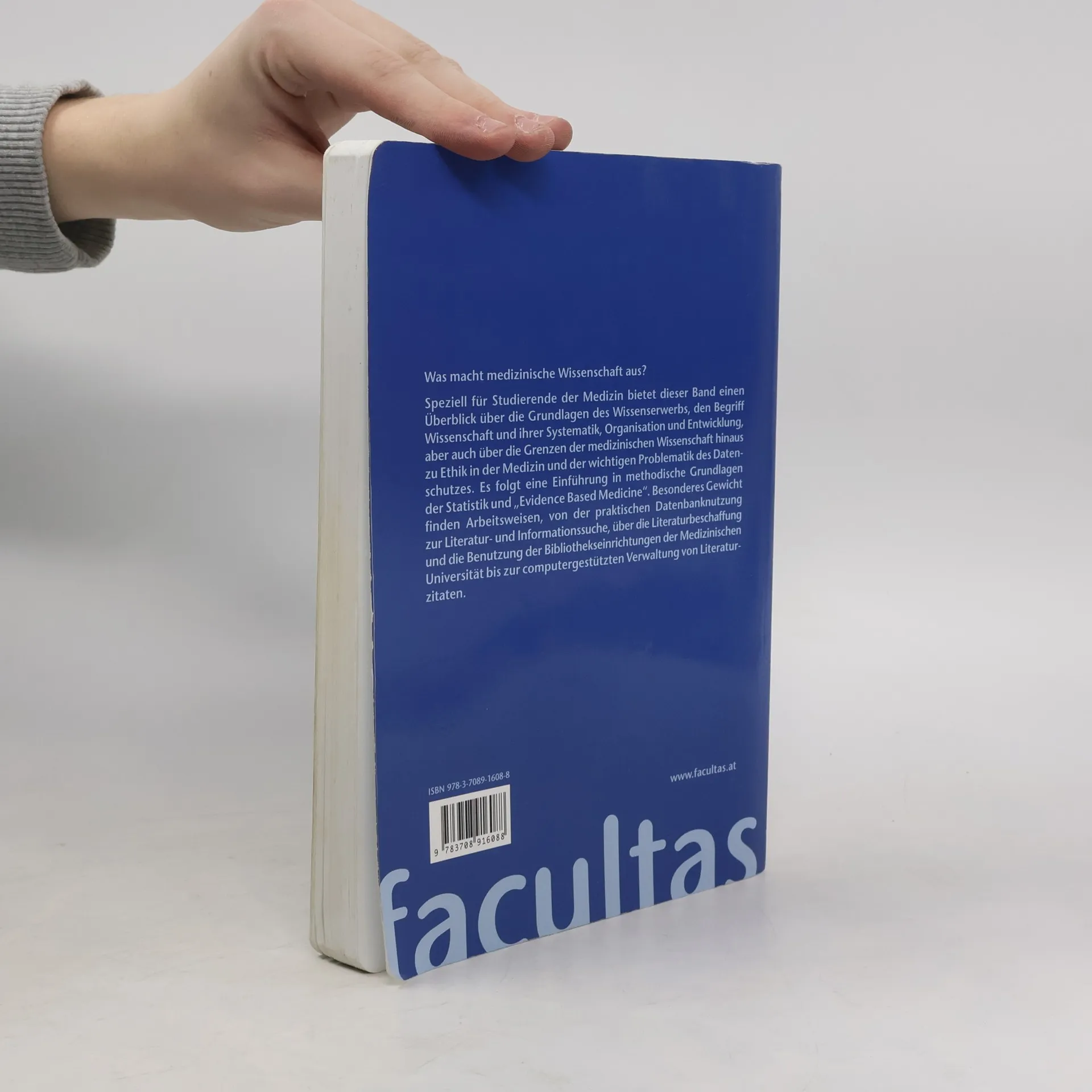 Was macht medizinische Wissenschaft aus? Speziell für Studierende der Medizin bietet dieser Band einen Überblick über die Grundlagen des Wissenserwerbs, den Begriff Wissenschaft und ihrer Systematik, Organisation und Entwicklung, aber auch über die Grenzen der medizinischen Wissenschaft hinaus zu Ethik in der Medizin und der wichtigen Problematik des Datenschutzes. Es folgt eine Einführung in methodische Grundlagen der Statistik und „Evidence Based Medicine“. Besonderes Gewicht finden Arbeitsweisen, von der praktischen Datenbanknutzung zur Literatur- und Informationssuche, über die Literaturbe-schaffung und die Benutzung der Bibliothekseinrichtungen der Medizinischen Universität bis zur computergestützten Verwaltung von Literaturzitaten. NEU: Analyse statistischer Verfahren für die Biomedizin