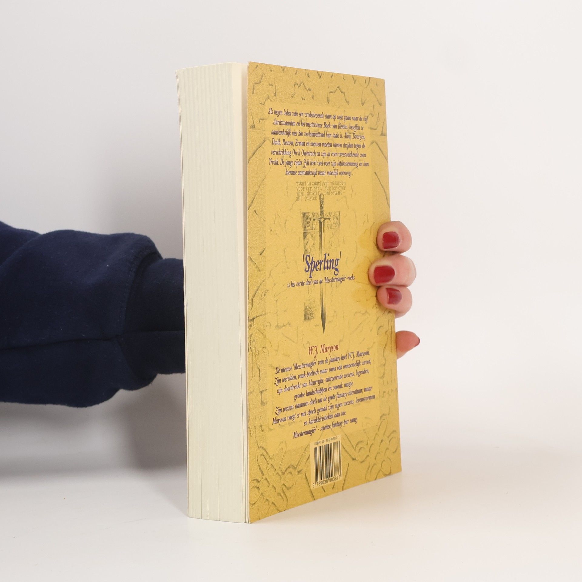 Om het onnoembare kwaad dat de wereld Aidén bedreigt te keren, begint een reisgezelschap van negen gezellen onder aanvoering van de jonge Jyll, van wie wordt gefluisterd dat hij de Ene, de Erfgenaam is, aan een gevaarvolle queeste, een speurtocht naar de Vijf Aartszwaarden en het Boek van Kennis. Het eerste zwaard: SperlingIn deze roman maakt de lezer kennis met de hoofdpersoon Jyll, een jongen die een rustig leventje leidt bij de nomaden van de Candras. Aan dit rimpelloos bestaan komt abrupt een eind als de stamverteller hem onverwacht aanwijst als aanvoerder van een reisgezelschap dat moet voorkomen dat de wereld van Jyll ten onder gaat aan het kwaad van de geheimzinnige Orc'h Osomrach, zijn zoon Yrroth en hun schare angstaanjagende dienaren. Het gevolg is dat Jyll en zijn acht gezellen beginnen aan een lange reis, met als doel het aanstormende kwaad te keren, een zoektocht naar de Vijf Aartszwaarden, waarvan Sperling het eerste is… ‘Warm aanbevolen voor diegenen die van goede fantasy houden.’ – Elise Somers