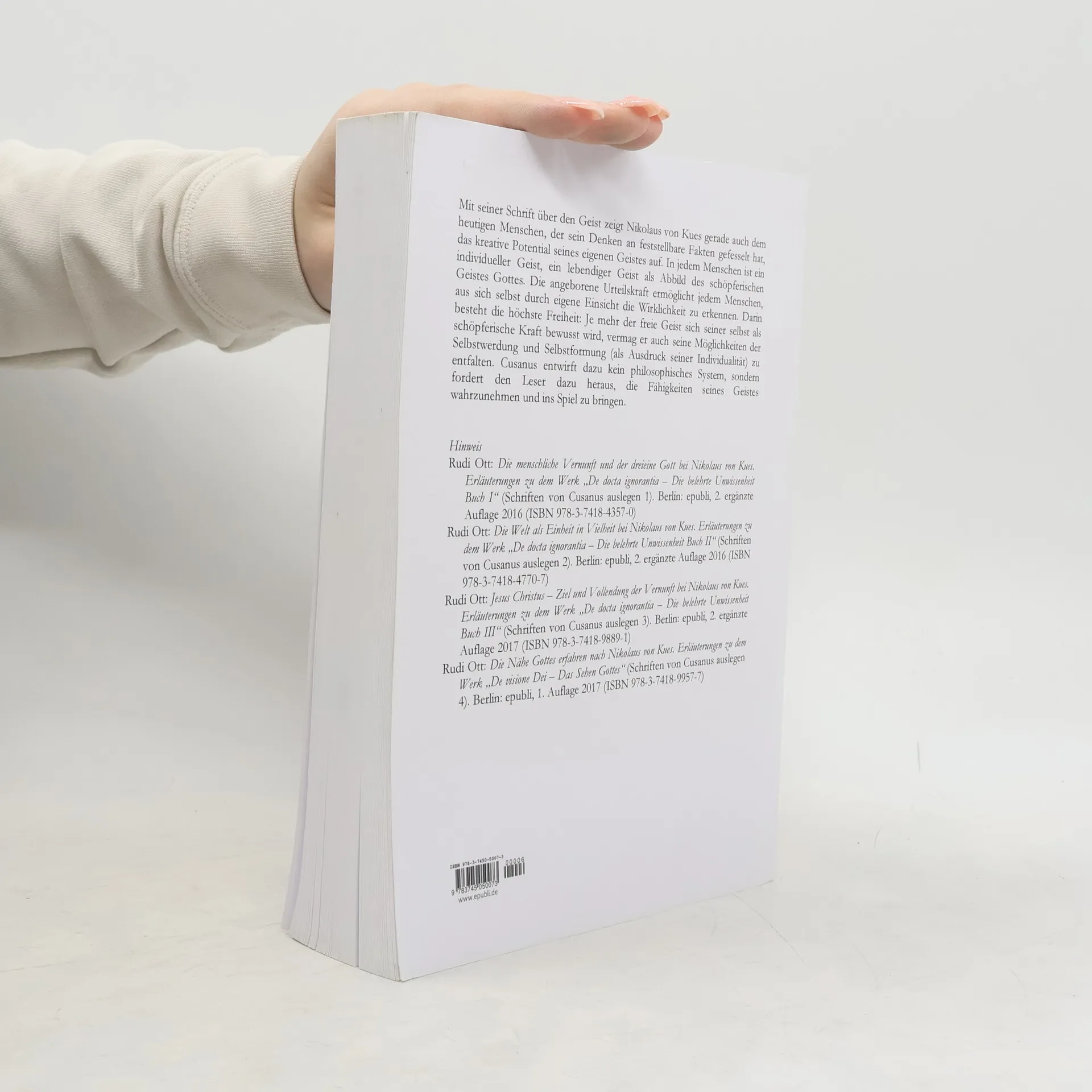 Mit seiner Schrift über den Geist zeigt Nikolaus von Kues gerade auch dem heutigen Menschen, der sein Denken an feststellbare Fakten gefesselt hat, das kreative Potential seines eigenen Geistes auf. In jedem Menschen ist ein individueller Geist, ein lebendiger Geist als Abbild des schöpferischen Geistes Gottes. Die angeborene Urteilskraft ermöglich jedem Menschen, aus sich selbst durch eigene Einsicht die Wirklichkeit zu erkennen. Darin besteht die höchste Freiheit: Je mehr der freie Geist sich seiner selbst als schöpferische Kraft bewusst wird, vermag er auch seine Möglichkeiten der Selbstwerdung und Selbstformung (als Ausdruck seiner Individualität) zu entfalten. Cusanus entwirft dazu kein philosophisches System, sondern fordert den Leser Schritt für Schritt dazu heraus, die Fähigkeiten seines Geistes wahrzunehmen und ins Spiel zu bringen. Bildung des Menschseins ist das Wesensmoment des menschlichen Geistes. - Das Buch erläutert jeden einzelnen Abschnitt des Gedankengangs von Cusanus.
