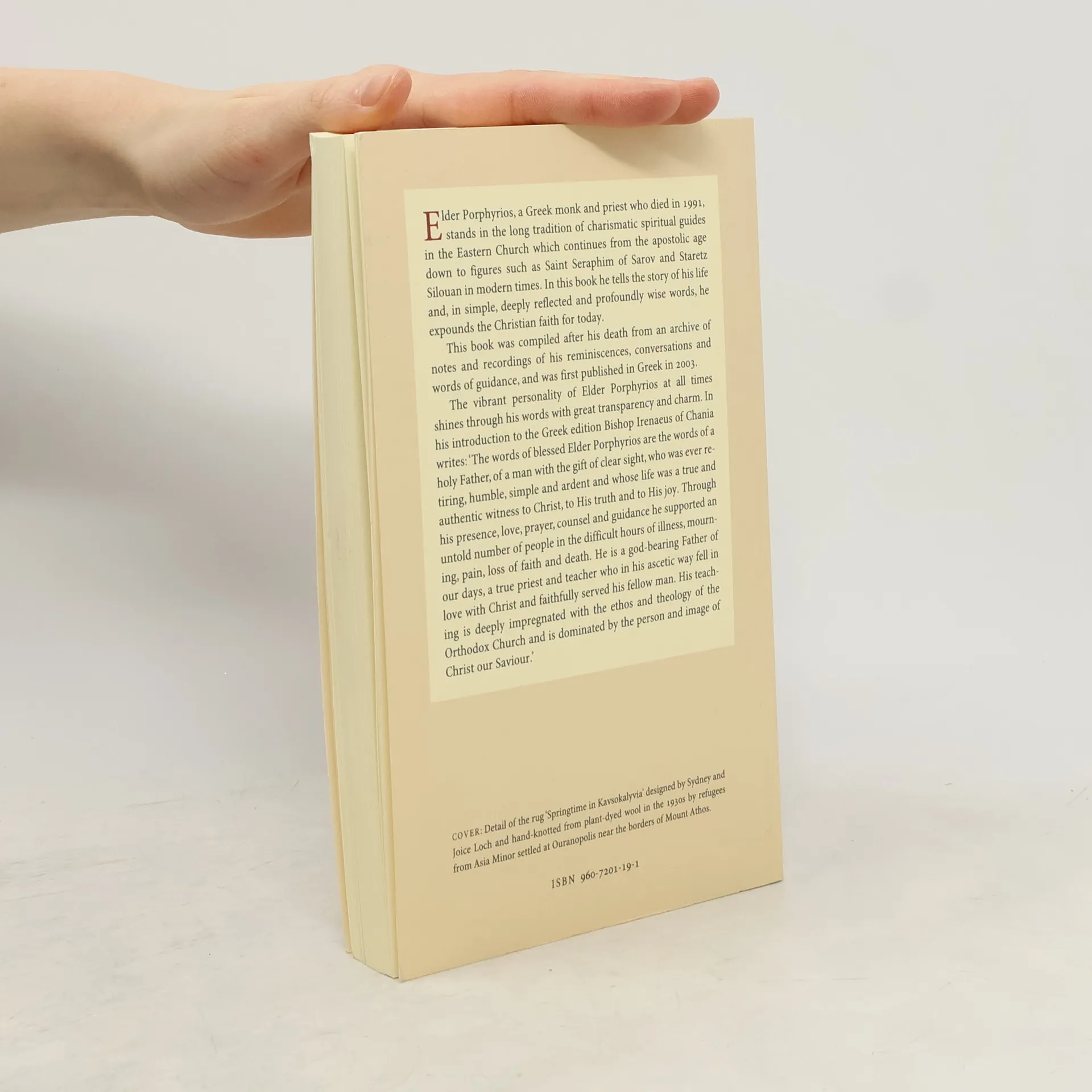 I have run to the fragrance of your myrrh, O Christ God, for I have been wounded by your love; do not part from me, O heavenly Bridegroom. Elder Porphyrios, a Greek monk and priest who passed away in 1991, is part of the rich tradition of charismatic spiritual guides in the Eastern Church, tracing back to the apostolic age and including modern figures like Saint Seraphim of Sarov and Staretz Silouan. In this book, he shares his life story and articulates the Christian faith with simplicity, depth, and profound wisdom. His vibrant personality shines through, revealing his charm and transparency. Bishop Irenaeus of Chania introduces the Greek edition, describing Elder Porphyrios as a holy Father with clear sight, who was humble, ardent, and a genuine witness to Christ's truth and joy. He provided support to countless individuals facing illness, mourning, pain, loss of faith, and death through his presence, love, prayer, and guidance. A god-bearing Father of our times, he exemplified a true priest and teacher who fell in love with Christ and served humanity faithfully. This book, compiled posthumously from notes and recordings of his reminiscences and guidance, was first published in Greek in 2003.