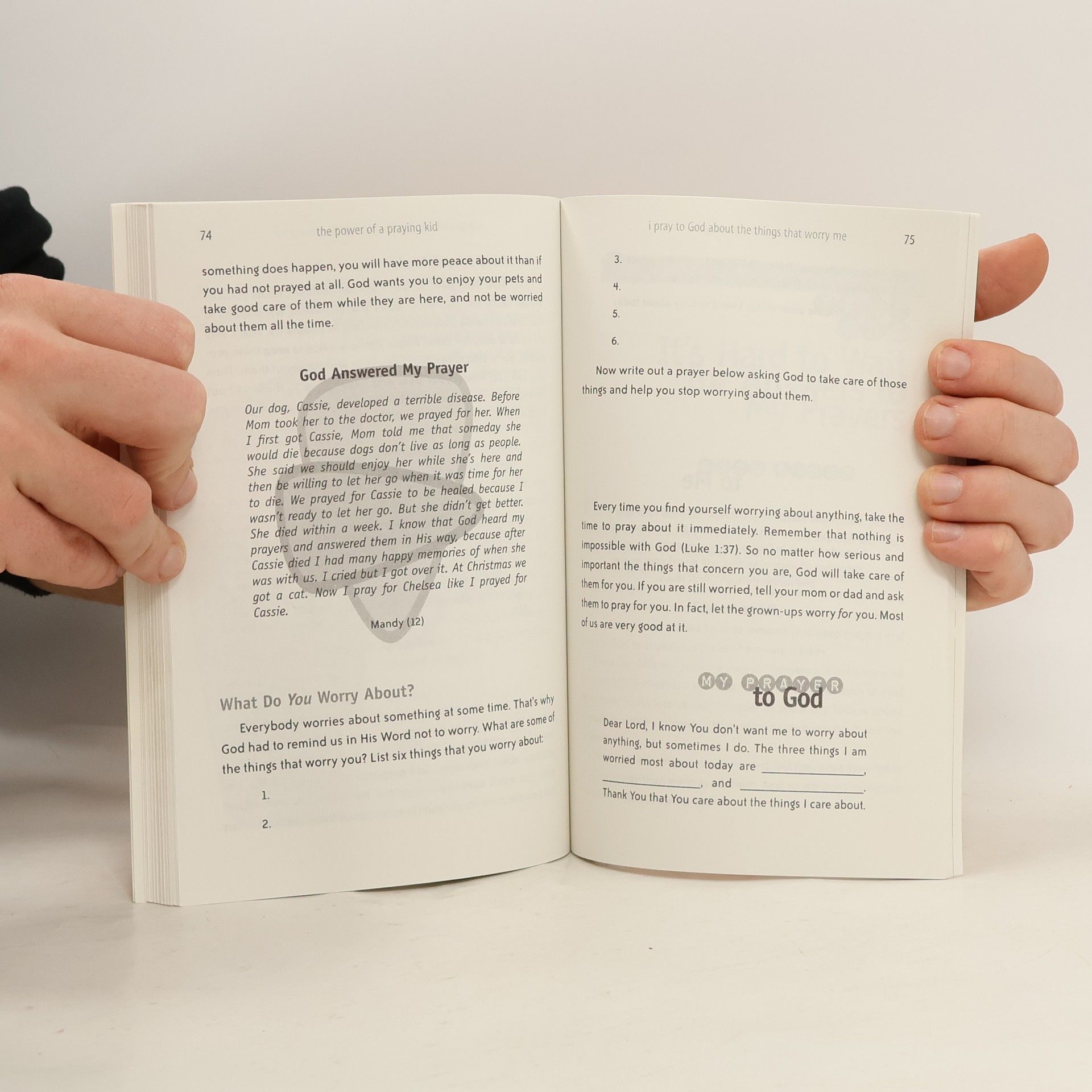 New from bestselling author Stormie Omartian! A look at prayer through little eyes.The Power of a Praying- Kid is a fun and "kid-friendly" approach to prayer for a very- special audience. Written with young hearts in mind, this short, easy-to-read book for 7- to 12-year-olds helps children learn to talk to God in a way that is meaningful and relational.Interactive call-outs, sample prayers, and places to record their own words to God are sprinkled throughout the pages. Moms and Dads as well as children will love the message of this book for growing-up kids...God wants to hear from them and He listens to their prayers.Book PaperbackPublication 7/1/2005 112Reading Age 8 and Up