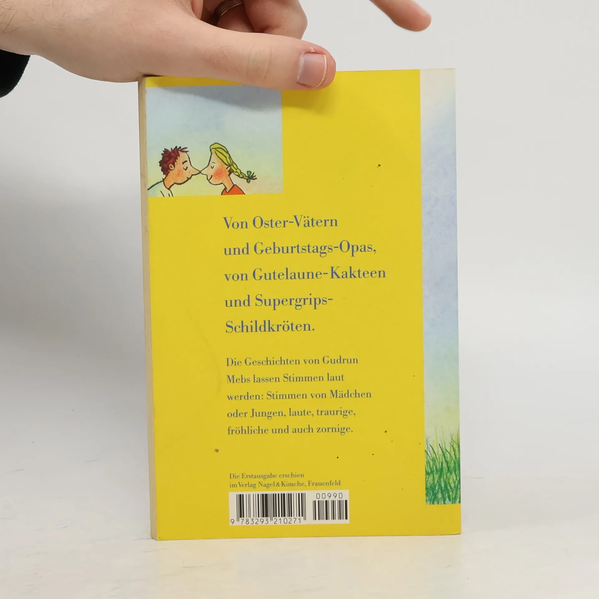 In acht Kurzgeschichten erzählt Gudrun Mebs mit stets wechselnden Protagonisten von einem Oster-Vater und einem Geburtstags-Opa, von einem Gutelaune-Kaktus und einer Wunder-Schildkröte. Ein Junge zieht ins Ausland und lässt seinen Freund traurig zurück, eine grosse Schwester vermisst plötzlich den kleinen Bruder, der sie so oft nervt, eine Freundschaft zerbricht, eine andere beginnt. Die Geschichten sind mit Witz und Tempo erzählt und regen zum Nachdenken und Diskutieren an. (Quelle: Verzeichnis ZKL).