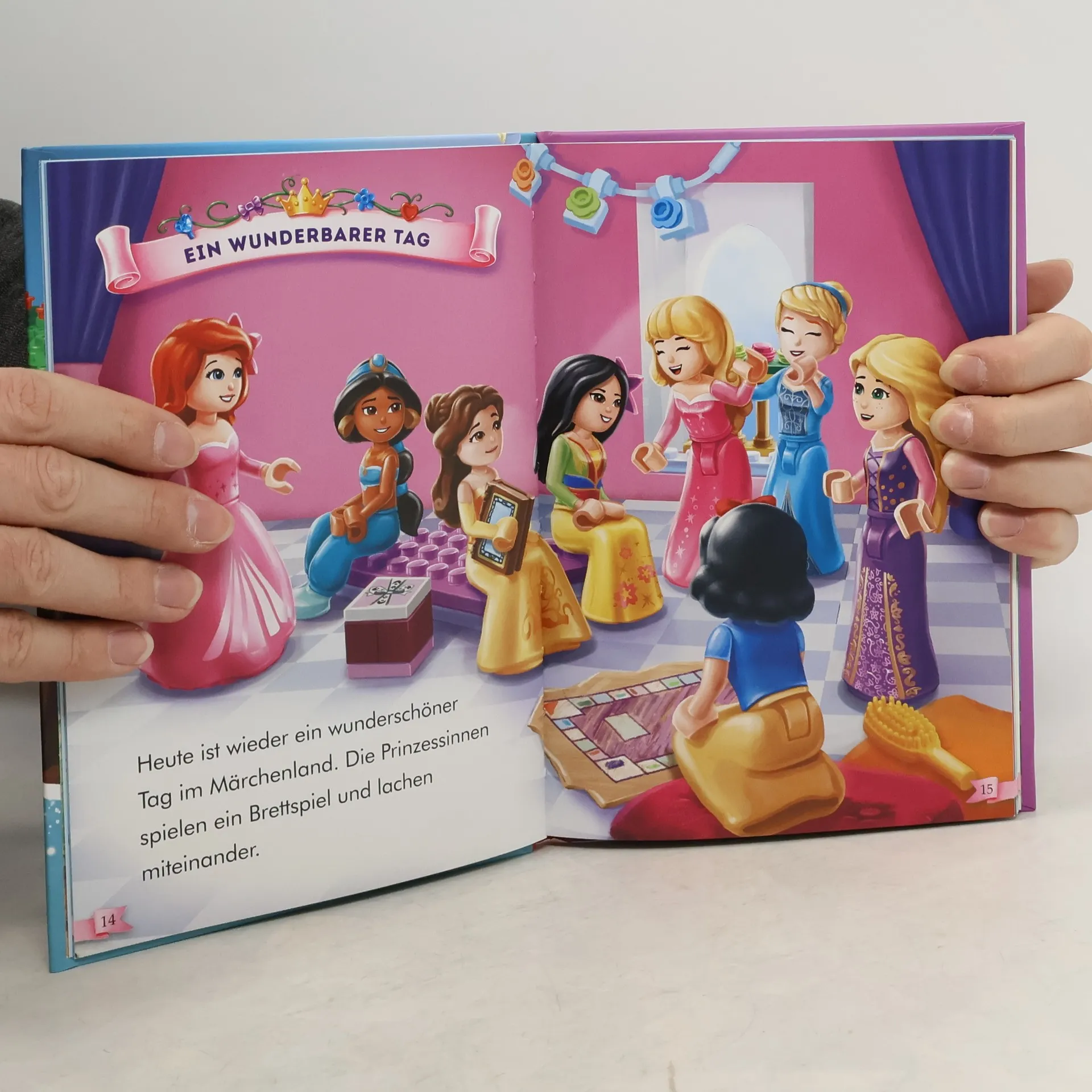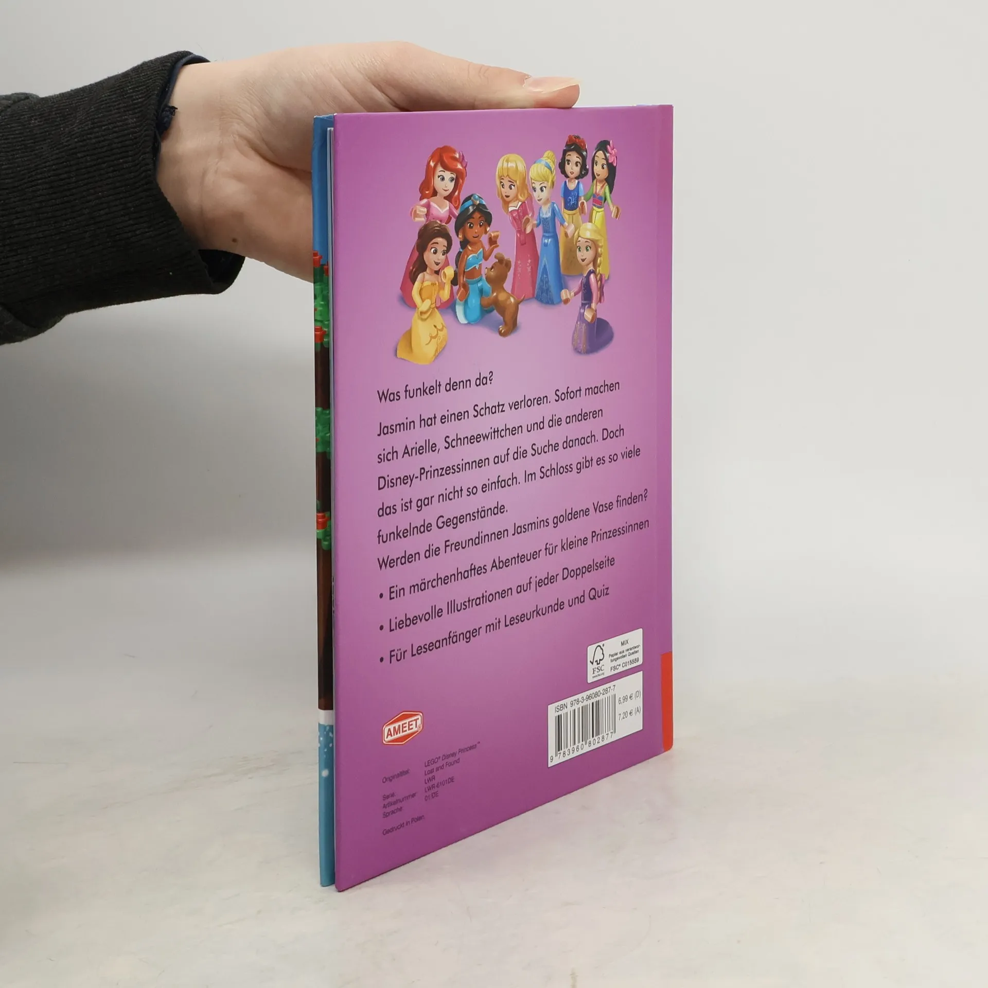 Was funkelt denn da?<br>Die Welt der Prinzessinnen jetzt auch im Erfolgsformat für Leseanfänger<br><br>Jasmin hat einen wertvollen Schatz verloren. Sofort machen sich Arielle, Schneewittchen und die anderen Disney-Prinzessinnen auf die Suche danach. Doch das ist gar nicht so einfach. In dem verzauberten Märchenschloss gibt es so viele funkelnde Gegenstände. Werden die Freundinnen Jasmins goldene Vase finden?<br><br>Dieses LEGO® Disney Prinzessin™ Lesebuch eignet sich besonders gut für Leseanfänger: Große Schrift, kurze Sätze und liebevolle Illustrationen auf jeder Seite erleichtern kleinen Prinzessinnen das Lesen. Ein Bilderglossar stellt die berühmten Disney-Heldinnen und ihre tierischen Freunde vor. Für ein positives Leseerlebnis sorgen eine Leseurkunde zum Ausfüllen und ein Prinzessinnen-Quiz am Ende des Buches. Die zauberhafte Geschichte in fünf Kapiteln punktet außerdem mit liebevollen Illustrationen auf jeder Seite.<br><br>©Disney<br>LEGO, the LEGO logo and the Brick and Knob configurations are trademarks of the LEGO Group. ©2019 The LEGO Group.<br>Produced by AMEET Sp. z o.o. under license from the LEGO Group.
