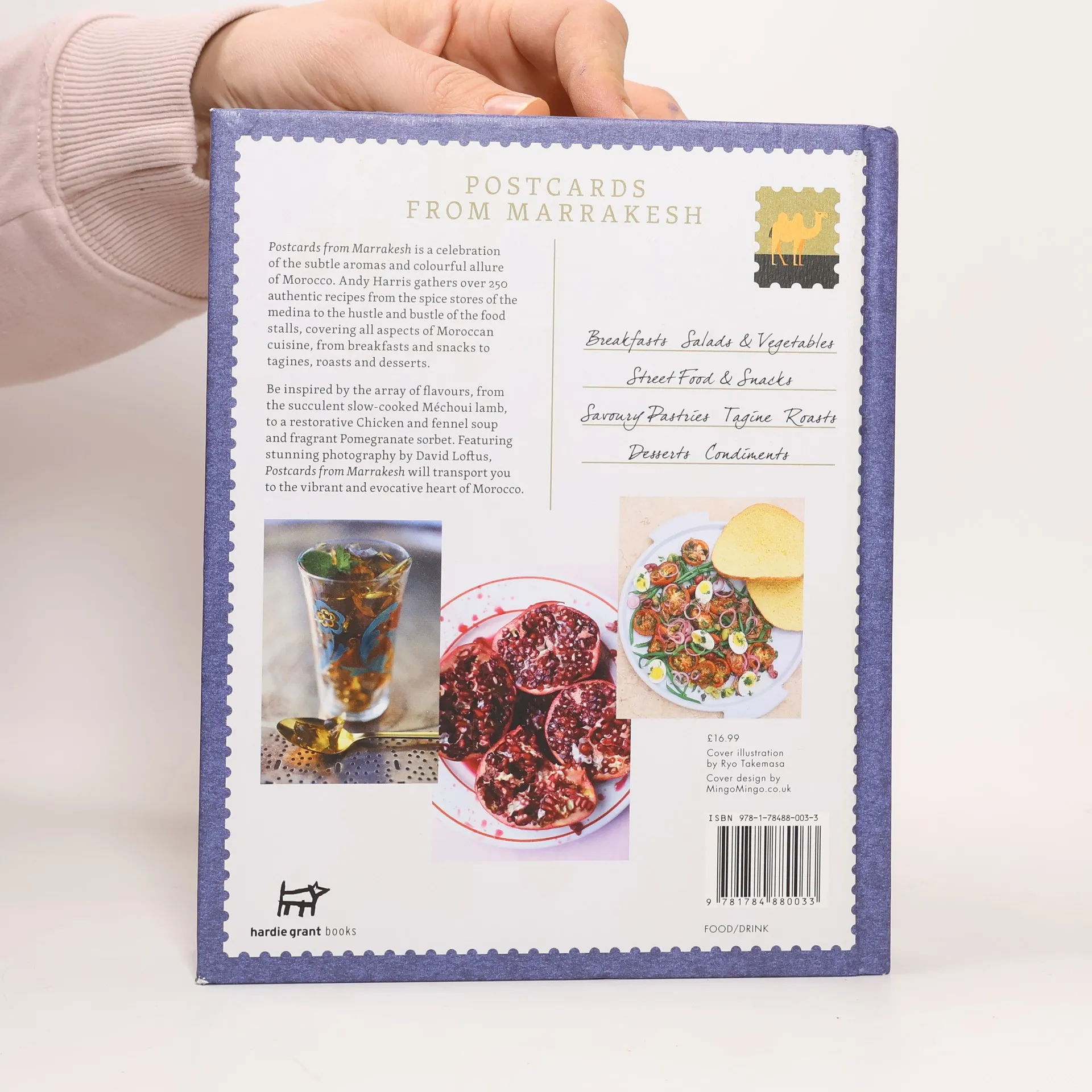 Postcards From Marrakesh is a celebration of the subtle aromas and colorful allure of Morocco. Andy Harris gathers over 140 authentic recipes from the spice stores of the medina to the hustle and bustle of the Djemaa El-Fna food stalls, covering all aspects of Moroccan cuisine, from breakfasts and snacks to tagines, roasts, and desserts. Be inspired by the array of flavors, from luscious slow-cooked Méchoui lamb to delicate pomegranate sorbet and mint tea jelly. Complemented by stunning photographs, Andy also includes useful hints on discovering this city and its food, along with personal, handwritten vignettes. Postcards From Marrakesh is a sumptuous book that captures the soul of this remarkable and unique city.