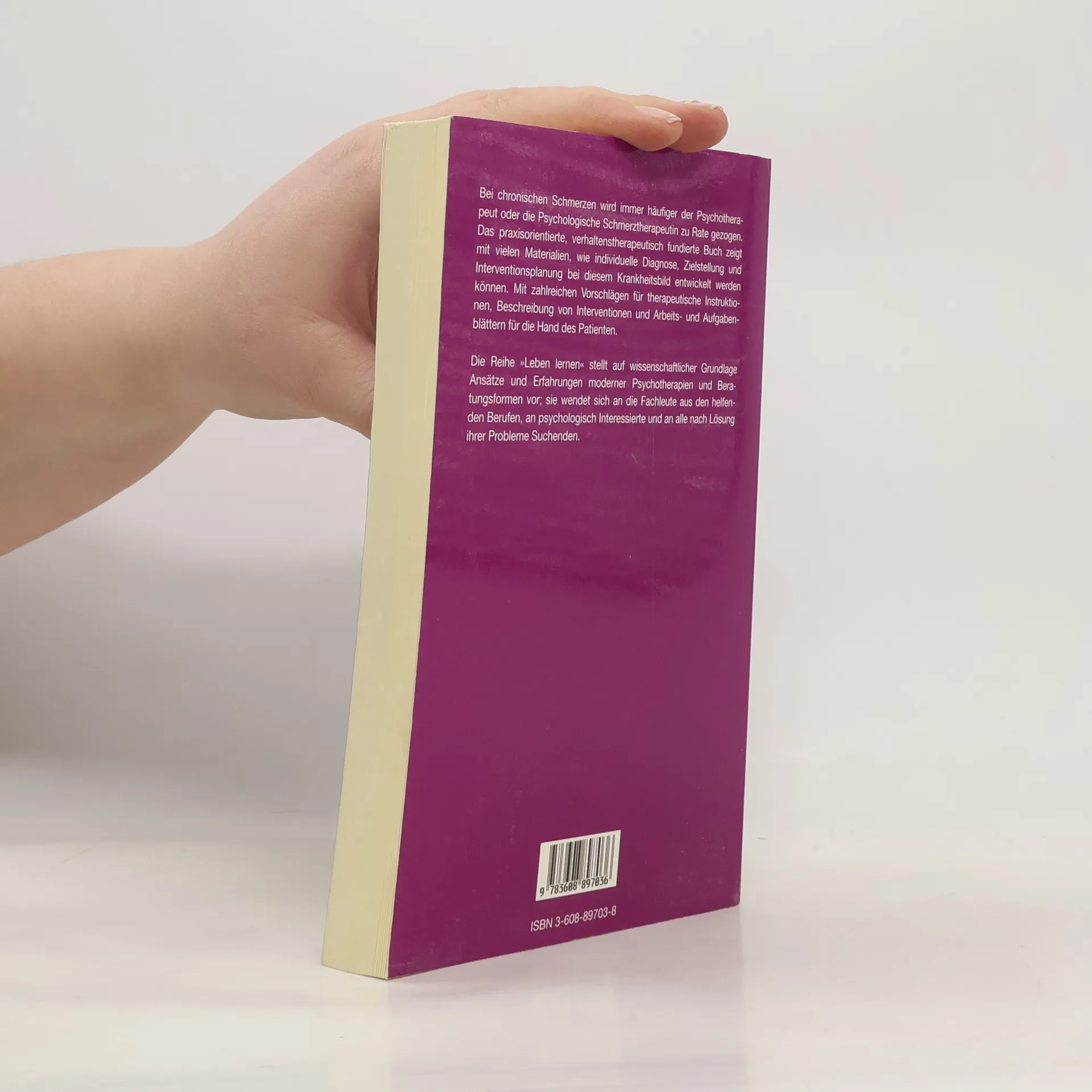Nicht immer ist der Schmerz Hüter und Wachhund der Gesundheit, der auf eine akute Verletzung oder Entzündung im Körper hinweist. Eine steigende Anzahl von Patienten leidet unter chronischem Schmerz, am häufigsten manifestiert als Rücken- oder Kopfschmerz. Chronische Schmerzen gelten als eigenständiges Störungsbild, dem mit eigenen Behandlungsmethoden begegnet werden muß. Das von der Autorin in der Psychosomatischen Fachklinik Hochsauerland entwickelte Konzept einer verhaltenstherapeutischen Schmerzbehandlung geht davon aus, daß bei einer Chronifizierung des Schmerzes maßgeblich auch psychische und soziale Faktoren beteiligt sind, Schmerzpatienten also durch gezielte Förderung eigener Kompetenzen und Ressourcen und durch einen verbesserten Umgang mit dem Schmerz zu helfen ist. Die Einleitungskapitel stellen das moderne verhaltensmedizinische Schmerzverständnis und die wichtigsten Kriterien der Schmerzbehandlung dar. Im Hauptteil des Buches werden die Methoden so konkret entfaltet, daß Psychotherapeuten und Ärzte sie in ihrer Praxis umsetzen können: Verfahren zur Schmerzreduktion, Entspannungsmethoden, Aufmerksamkeitslenkung, kognitive Methoden der Schmerzbewältigung, verhaltensbezogene Strategien. Zu allen Punkten gibt es kurzgefaßte Informationen für Patienten und Übungen, gebrauchsfertig für die Arbeit mit Schmerzpatienten in Gruppen- oder Einzeltherapie.