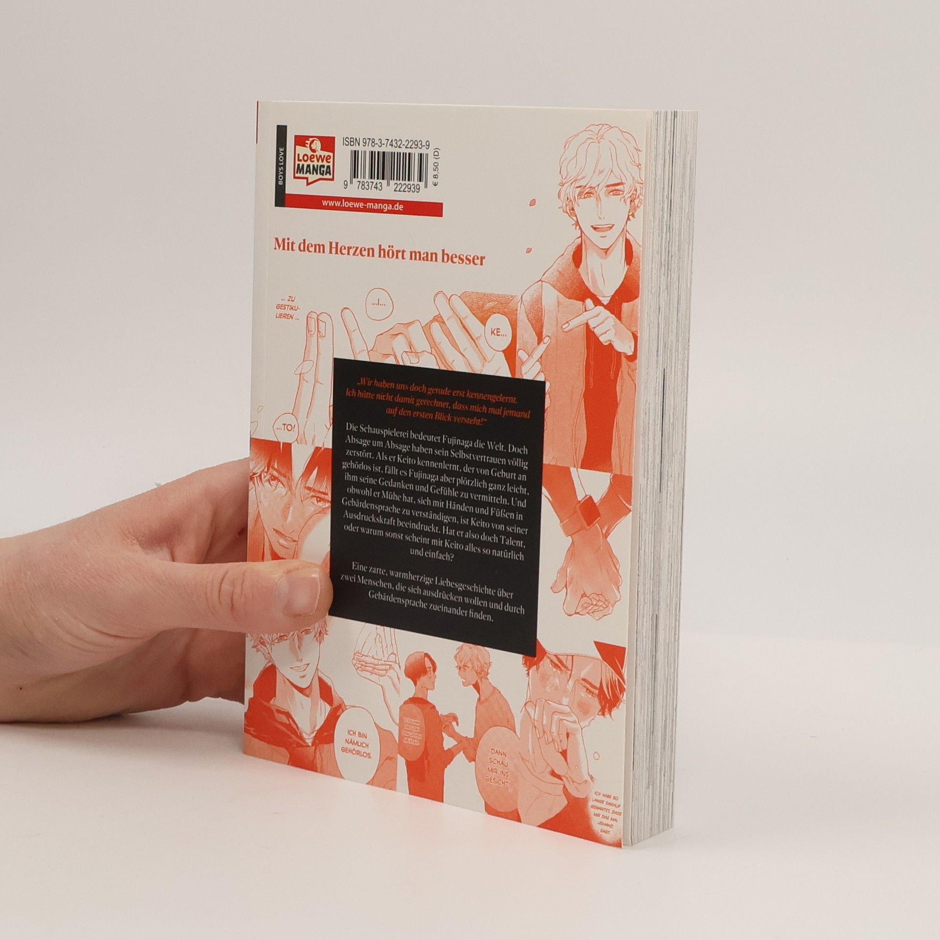 Mit dem Herzen hört man besser Sagʼs mit den Händen ist eine herzerwärmende und ermutigende Liebesgeschichte über einen demoralisierten Schauspieler, der durch die Liebe zu einem Gehörlosen neuen Mut fasst und zu sich selbst findet. Autorin und Zeichnerin Teku Rin gelingt es hervorragend, das Thema Hörbehinderung einfühlsam und gleichzeitig unsentimental mit einer Liebesgeschichte zu verstricken. Keito, ein Student mit einer angeborenen Einschränkung der Hörfähigkeit, ist nicht „behindert“, er kann sowohl hören als auch sprechen und mehr noch – er macht dem nichtbehinderten Schauspieler Fujinaga Mut und bestätigt ihn darin, dass er ein angeborenes Talent dafür hat, sich auszudrücken, obwohl bei seinen Vorsprechen stets das Gegenteil behauptet wird. Großes Wohlfühl-Kino für Fans von Mangas wie Sag nichts und Eine Nacht voller Sterne.