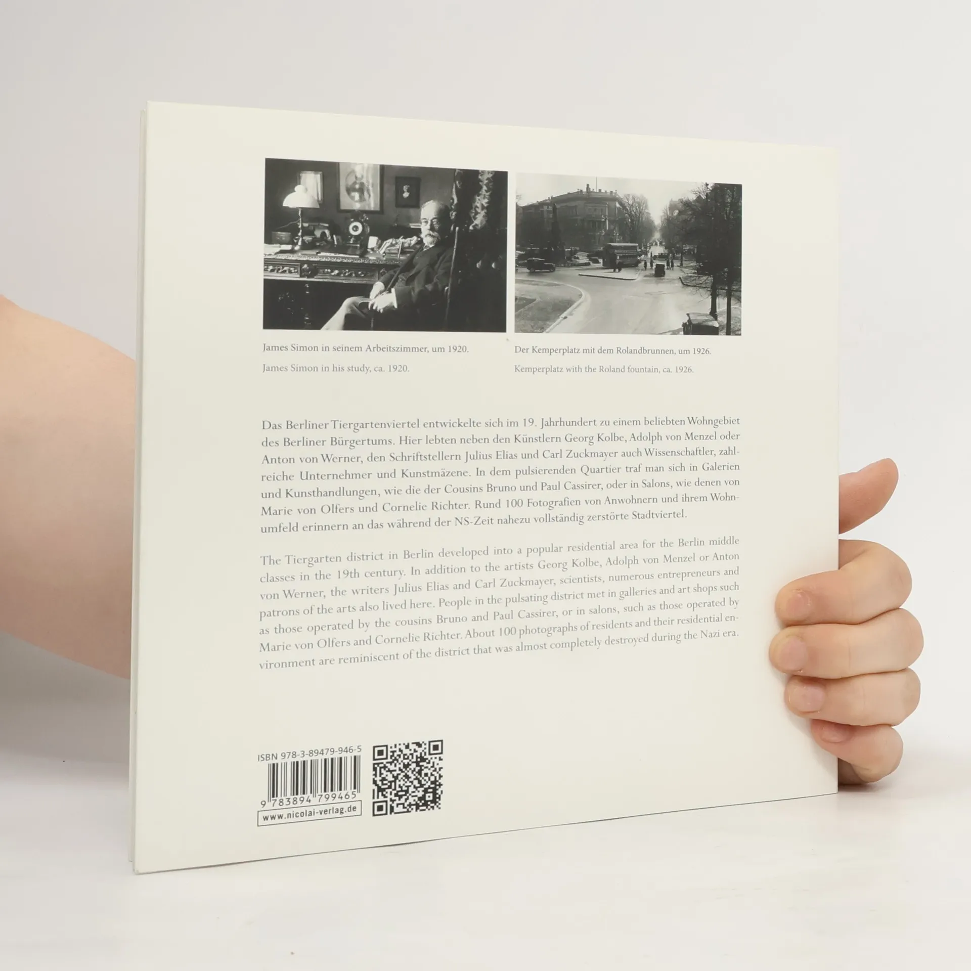Das Berliner Tiergartenviertel entwickelte sich Ende des 18. Jahrhunderts zu einem bevorzugten Wohngebiet des Großbürgertums. Rund um die Matthäuskirche entstanden neben mehrgeschossigen Wohnhäusern zahlreiche Stadt- und Mietsvillen. Zu den Bewohnern des Viertels zählten viele prominente Personen, unter ihnen Künstler wie Georg Kolbe, Adolph von Menzel und Anton von Werner. Außerdem wurde eine Reihe von Galerien und Kunsthandlungen eröffnet, wie die der Cousins Bruno und Paul Cassirer nicht weit vom Kemperplatz. Die Bewohner pflegten zudem einen privaten Austausch und kamen regelmäßig in den gesellschaftlichen Salons zusammen, so bei Marie von Olfers. Die Nationalsozialisten ließen zum Ausbau der 'Welthauptstadt Germania' viele Gebäude abreißen, später wurde das Viertel während des Zweiten Weltkriegs nahezu vollständig zerstört. In dieser Publikation werden 60 ausgewählte ehemalige Bewohner des Tiergartenviertels vorgestellt, deren Porträts durch Abbildungen ihres Wohnumfeldes, markanter städtebaulicher Plätze und Straßenzüge ergänzt werden. Den historischen Fotografien sind aktuelle Aufnahmen an die Seite gestellt; Auszüge eines alten und heutigen Stadtplans verdeutlichen zudem den dramatischen Wandel des historischen Tiergartenviertels.