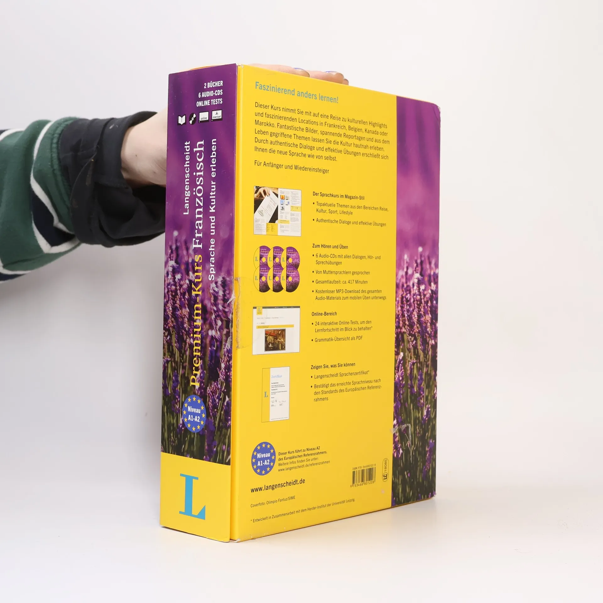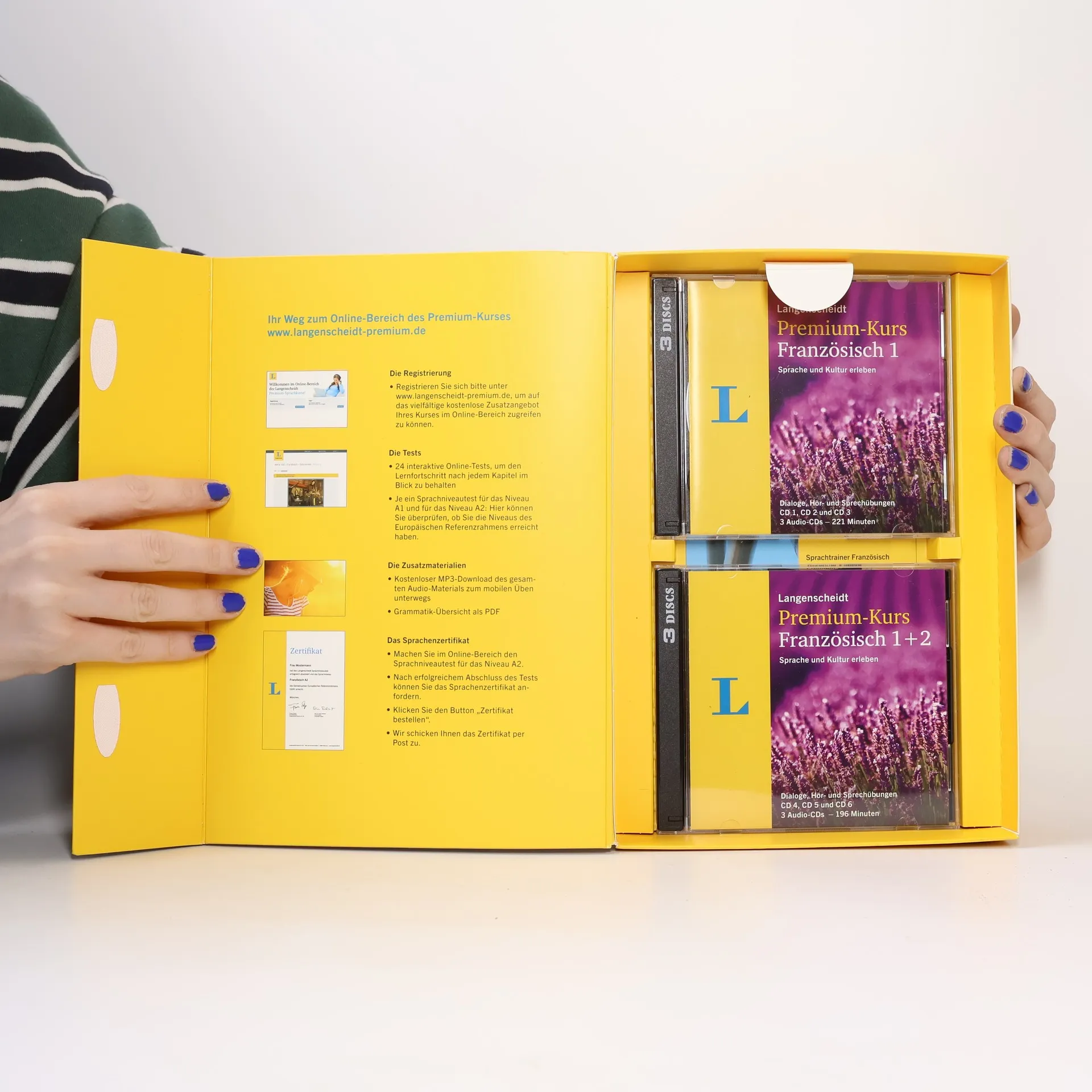 Mit dem Französisch-Premium-Kurs entdecken und erleben Sie kulturelle Highlights und faszinierende Orte in Frankreich, Belgien und Kanada. Im umfangreichen Lernpaket des Sprachkurses sind Lehrbücher, Audio-CDs und Online-Tests enthalten. Perfekt für Anfänger und Wiedereinsteiger! Der Premium-Kurs Französisch nimmt Sie mit auf eine ungewöhnliche Reise zu interessanten Orten und kulturellen Higlights in Frankreich, Belgien und Kanada. Die 2 Lehrbücher im Magazin-Stil und die 6 Audio-CDs bieten Ihnen alles, was Sie als Anfänger oder Wiedereinsteiger benötigen: Texte mit ansprechenden Themen und effektive Übungen, Dialoge, Hör- und Sprechübungen sowie Online-Tests mit detailliertem Feedback. So wird das Französischlernen zu einem Erlebnis und das Langenscheidt-Sprachenzertifikat bestätigt Ihnen am Ende Ihr Sprachniveau nach dem Europäischen Referenzrahmen.
