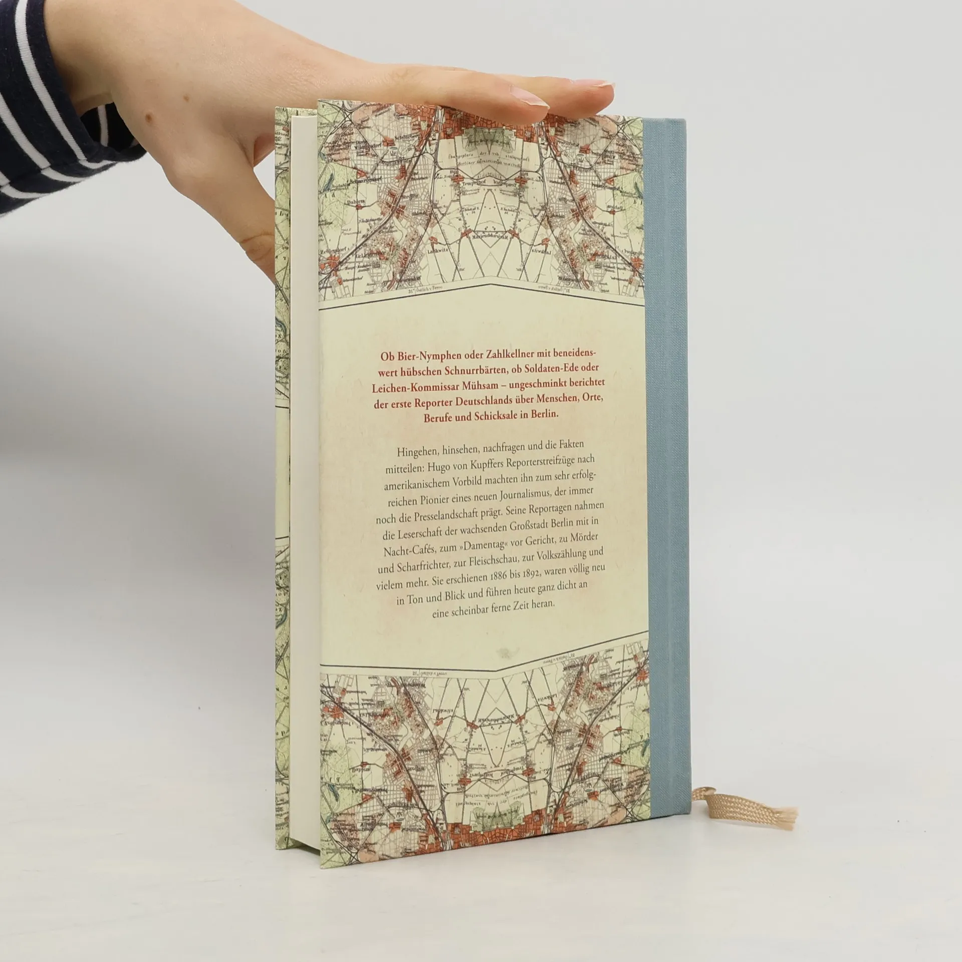 Hugo von Kupffers Berichte, die ab 1886 im "Berliner Lokal-Anzeiger" erschienen sind, waren völlig neuen Typs: persönlich recherchiert, faktenbasiert, vorurteilslos und nah am Wunsch der Lesenden nach Hintergrundwissen über ihre unmittelbare Umgebung. Nach dem Vorbild der amerikanischen Presse, die er aus eigener Erfahrung sehr gut kannte, machte von Kupffer sich auf den Weg durch die Stadt, beobachtete, führte Interviews und schrieb ohne Sensationslust, sondern vielmehr mit menschlichem Verständnis über die gefundenen Tatsachen: die Arbeitswelt der Kellner, vor Gericht gebrachte Prostituierte, Besuche beim Scharfrichter, die letzten Minuten eines zum Tode Verurteilten oder auch die humoristische Seltsamkeit mancher Berliner Schilder – die Themen sind vielfältig, und was Hugo von Kupffer berichtet, das berührt, trifft oder amüsiert immer noch und führt mit einem großen Reichtum an Informationen ganz dicht an eine scheinbar ferne Zeit heran.
