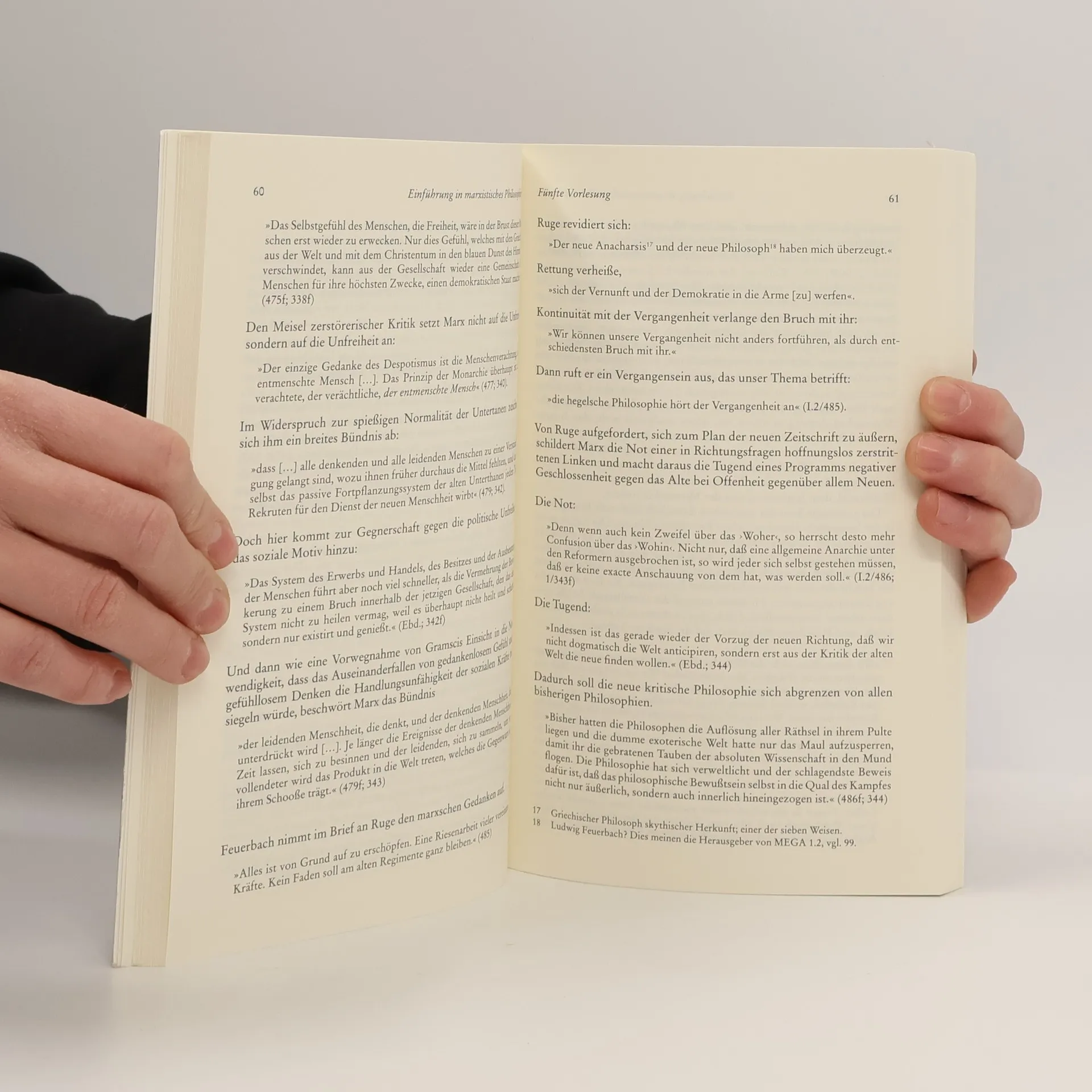 'Beschäftigen wird uns ebesowohl, was es heißt, in der Philosophie Marxist zu sein, als auch die noch viel kniffligere Frage, was es heißt, im Marxismus Philosoph zu sein.' Mit dieser Vorlesung hat Haug sich nach 35-jähriger Lehrtätigkeit im Winter 2000 auf 2001 von Berlin und seiner Freien Universität verabschiedet. 'Wie man bei einem Buch das Vorwort zuletzt schreibt, holt die Abschiedsvorlesung die Vorschule nach. Sie tut dies, indem sie die Voraussetzungen kritischen Philosophierens im Anschluss an Marx reflektiert, dessen Denkentwicklung sie einer eingehenden Relektüre unterzieht.'