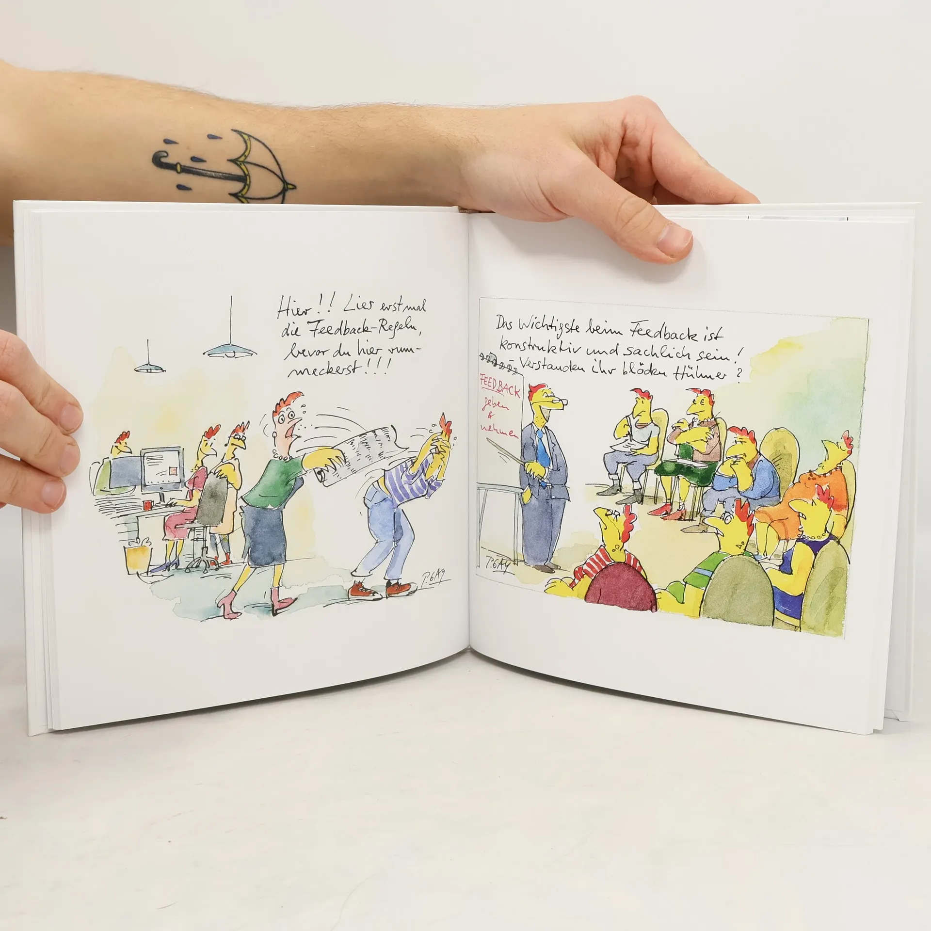 Alle kennen es – und Peter Gaymanns spitze Feder bringt es auf den Punkt: den ganz normalen täglichen Wahnsinn im Büro. Die lieben Kollegen, die lästigen Meetings mit dem Chef, die endlosen Sitzungen und das Warten auf die ersehnte Mittagspause oder das Wochenende – nichts entgeht dem Blick des Freiburger Cartoonisten. Und bringt das digitale Büro wirklich die erhoffte Entlastung oder ist es einfach nur Stress, weil man ständig unter Beobachtung steht? Ach ja, und die Weihnachtsfeier findet im Januar statt ... Messerscharf spießt Peter Gaymann Typisches auf und bringt alle zum Lachen!