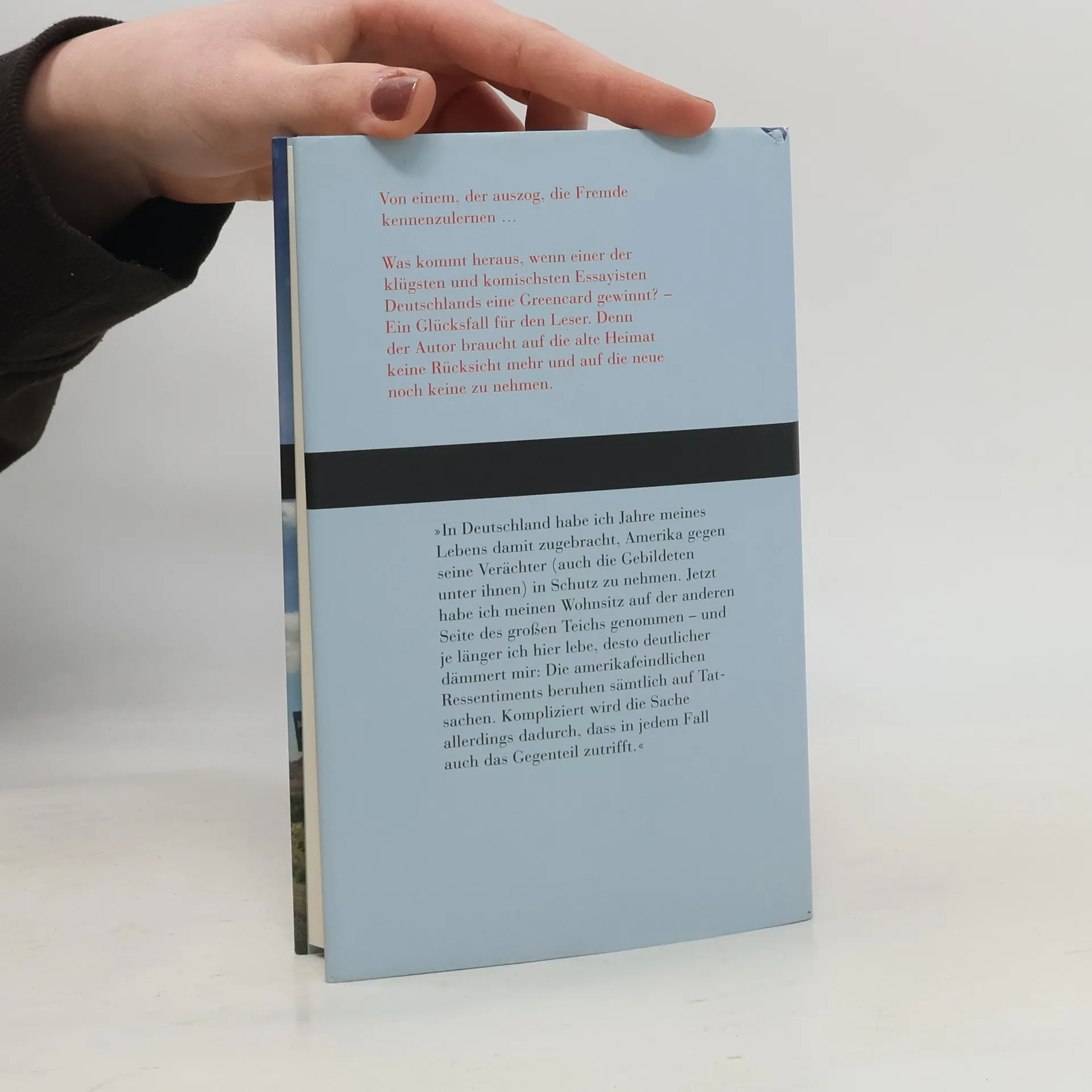 Ein kluger und komischer Essayist aus Deutschland gewinnt eine Greencard und begibt sich auf ein Abenteuer in die USA. Der Autor, der aus Jux an der Verlosung teilnahm, erhält unerwartet den Anruf, dass er auswandern könne. Während die meisten zögern würden, nimmt Hannes Stein den Mut zusammen, verlässt sein gewohntes Leben und zieht nach Manhattan. Dort stellt er fest, dass nichts von dem, was er über Amerika gehört oder gelesen hat, der Realität entspricht – es stimmt alles und nichts zugleich. Mit der Neugier eines Ethnologen erkundet Stein seine neue Umgebung, lernt die Rituale des Alltags kennen und erlebt die amerikanische Politik hautnah, einschließlich des Wahltags von Barack Obama in Alaska. Auch die Geschichte und Religion, etwa bei den Mormonenfestspielen, werden für ihn zu faszinierenden Entdeckungen. Dabei wird seine alte Heimat immer wieder zum Kontrast, der ihm neue Einsichten und Überraschungen über sein früheres Leben bietet. Stein reflektiert über das, was er hinter sich gelassen hat, und entdeckt die Vielfalt und Komplexität seiner neuen Welt.