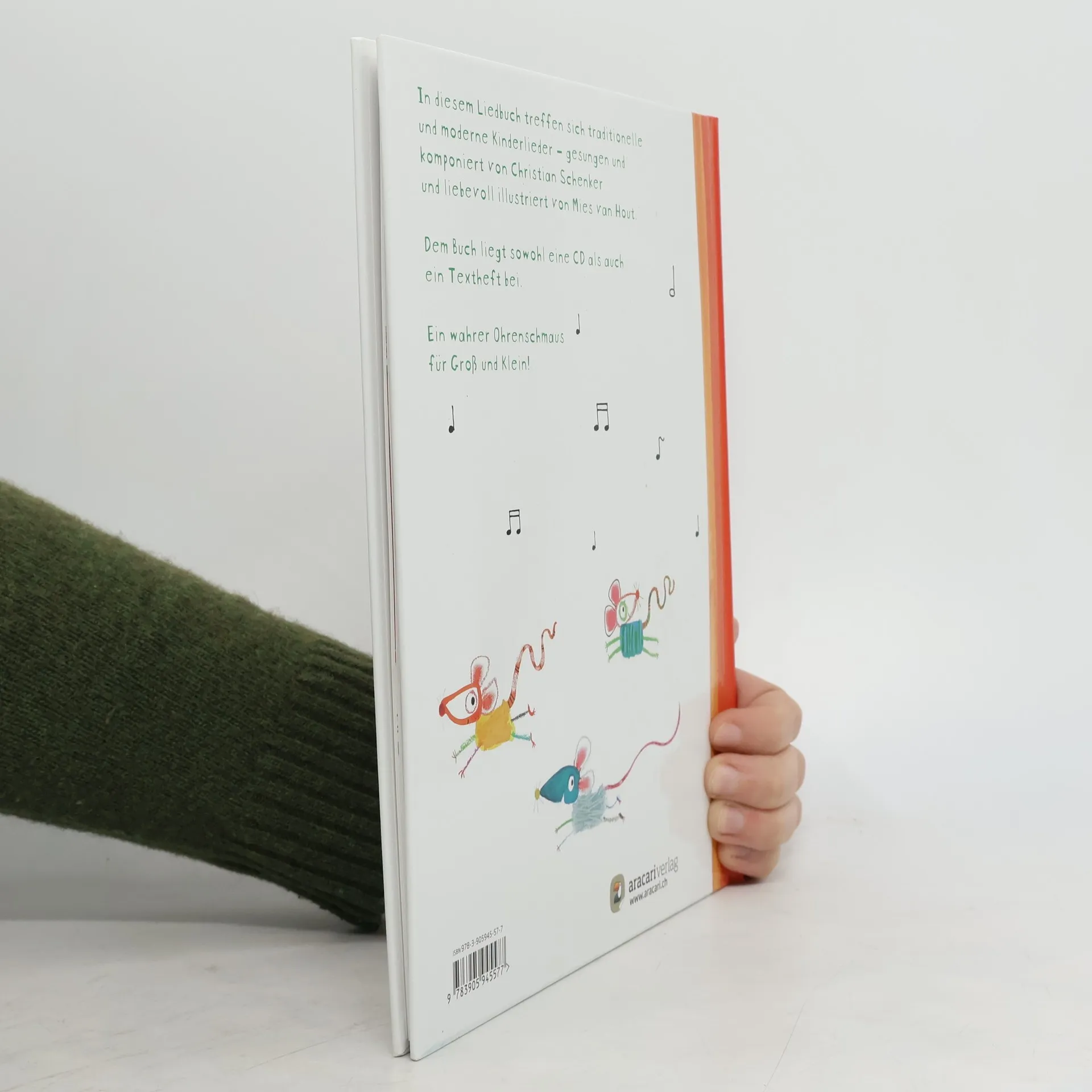In diesem Liederbuch treffen traditionelle (wie «Alle meine Entchen») und moderne Kinderlieder (wie «Fisch auf dem Tisch») aufeinander. Die liebevollen und ausdrucksstarken Illustrationen von Mies van Hout werden durch den Gesang von Christian Schenker untermalt. Dem Buch liegt sowohl eine CD als auch ein Textheft bei. Das Buch ist sowohl in Hochdeutsch als auch in Schweizerdeutsch erhältlich!
