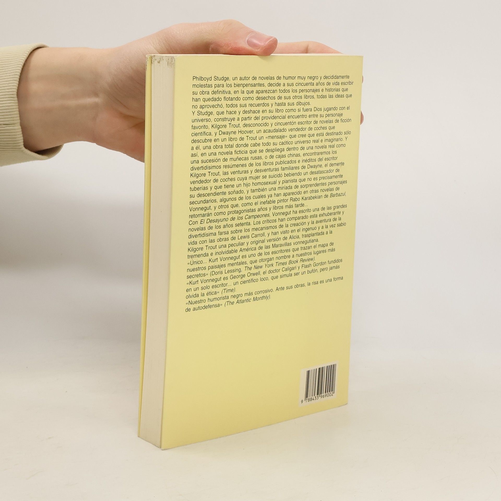 A sus cincuenta años Philboyd Studge, autor de novelas altamente corrosivas y molestas para los amantes de la corrección política, ha decidido que va a encarar su obra magna. En ella reunirá todos los personajes de sus obras anteriores y concentrará todas aquellas ideas que le quedaron en el tintero. Para tal empresa echará mano de su personaje favorito, el también cincuentón Kilgore Trout, escritor de novelas de ciencia ficción y lo acompañará de Dwayne Hoover, exitoso vendedor de coches, quien cree haber descubierto en las páginas de Trout una importante revelación personal. Y así, en una novela ficticia que se despliega dentro de una novela real como una sucesión de cajas chinas, encontraremos los divertidísimos resúmenes de los libros publicados e inéditos del escritor Kilgore Trout, las venturas y desventuras familiares de Dwayne, el demente vendedor de coches cuya mujer se suicidó bebiendo un desatascador de tuberías y que tiene un hijo homosexual y pianista que no es precisamente el sucesor deseado, y también una ristra de sorprendentes personajes secundarios, algunos de los cuales ya han aparecido en otras novelas de Vonnegut, y otros que, como el inefable pintor Rabo Karabekian de Barbazul, retornarán como protagonistas años y libros más tarde...