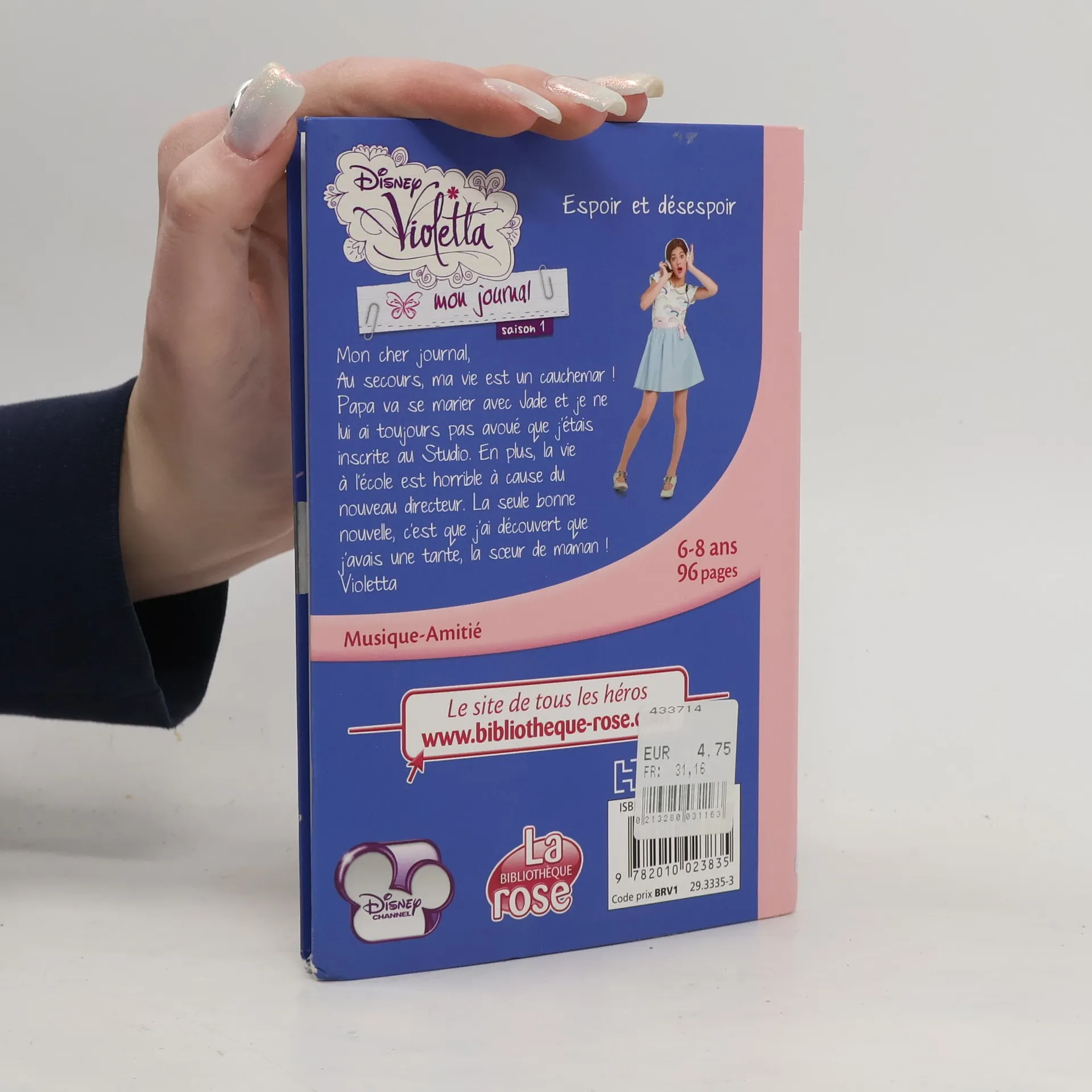 Mon cher journal, Au secours, ma vie est un cauchemar ! Papa va se marier avec Jade et je ne lui ai toujours pas avoué que j’étais inscrite au Studio. En plus, la vie à l’école est horrible à cause du nouveau directeur. La seule bonne nouvelle, c'est que j'ai découvert que j'avais une tante, la soeur de maman ! Violetta