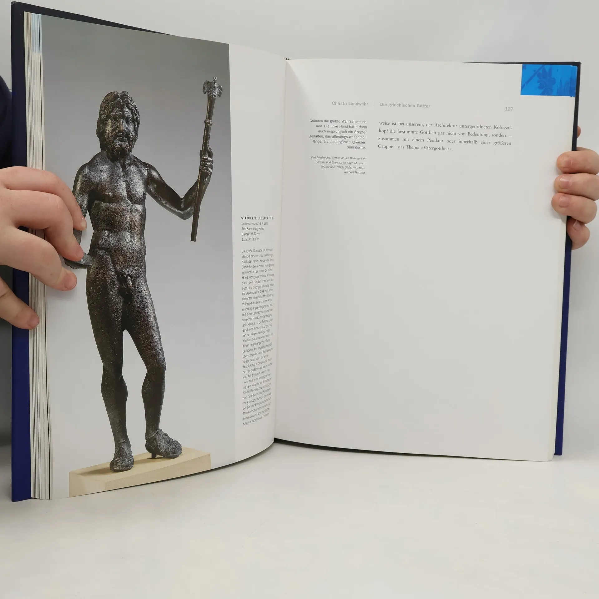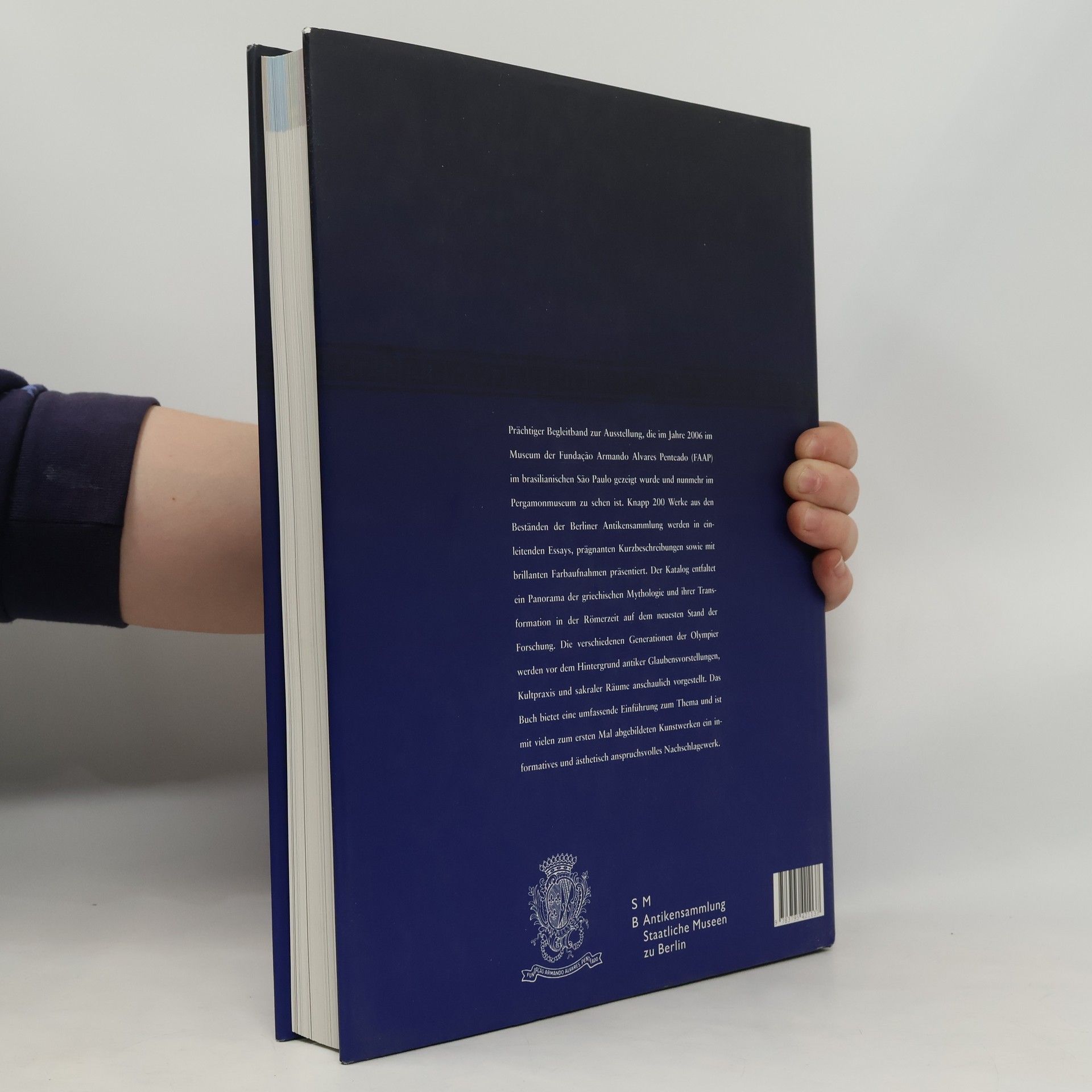 This splendid book accompanied an exhibition first shown in Sao Paolo (Brasil) in 2006 which is now on in the Berlin located Pergamon Museum. Almost 200 pieces of art from the Berlin antiques collection are featured in essays, concise short descriptions as well as brilliantly photographed. The catalogue opens a great insight into ancient Greek mythology and its transformation into the Roman Empire's time, as seen from the latest state in research. The different generations of Olympus gods and goddesses are introduced with the background of antique believe, cult practice and sacred locations. The Berlin Pergamon Museum is undoubtedly one of the best equipped and best displayed museums in the world on old Greek sculpture and culture.