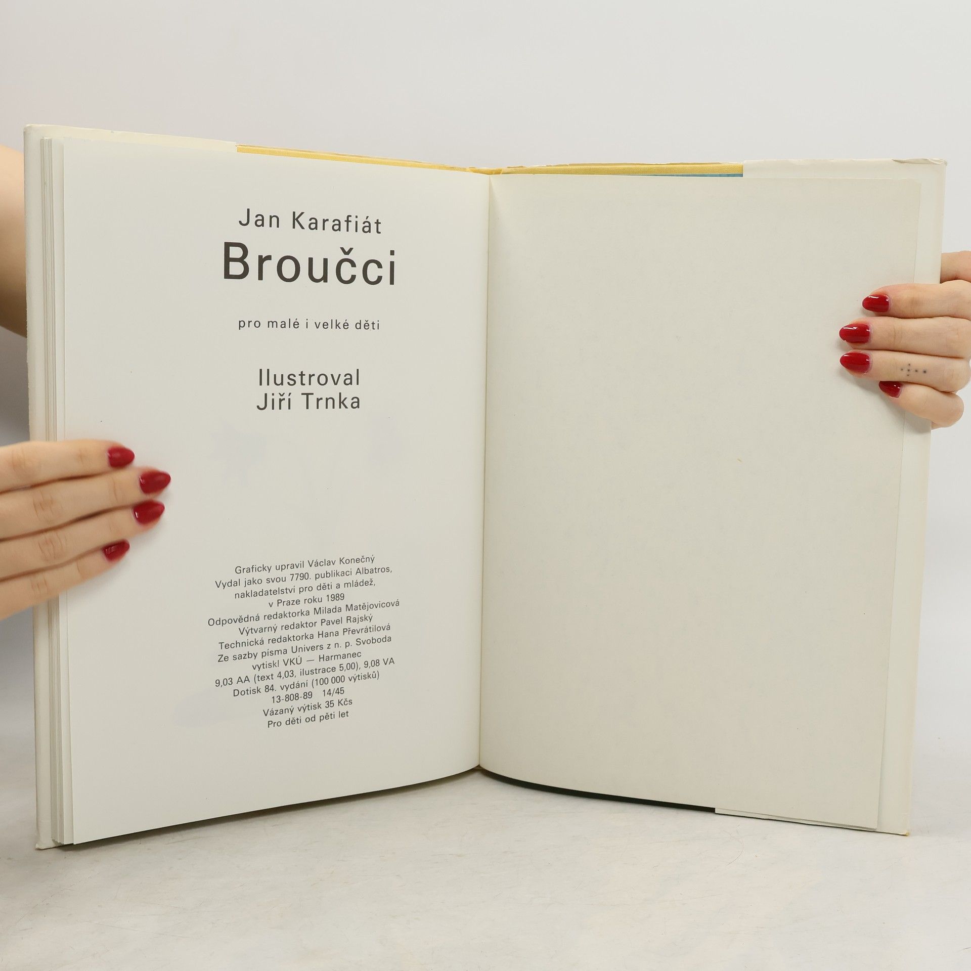 Broučky, jediné umělecké literární dílo Jana Karafiáta (1846–1929), potkaly nejednoduché osudy. Roku 1876 anonymně vyšel skromný, neilustrovaný svazek – tehdy s názvem Broučci pro malé i velké děti – a zapadl vcelku bez povšimnutí. Až teprve po sedmnácti letech knížku objevil a zpopularizoval novinář Gustav Jaroš, který ji označil jako „snad nejkrásnější květ naší české literatury dětské“ a jejího autora nazval „českým Andersenem“. Poetická obraznost Broučků, citlivý přírodní lyrismus a ušlechtilý humanismus si dále uchovávají nepomíjející platnost. I jazykově, svým jadrným básnickým slohem šťastně spojujícím hovorovost lidové řeči s vytříbenými biblismy, je dílo Jana Karafiáta pozoruhodné. Čtenářsky i posluchačsky stále přitažlivé zůstávají postavičky malých hrdinů, broučků a berušek, které při všech svých světlých stránkách nejsou zbaveny pravdivých lidských vlastností. Spolehlivým průvodcem Broučků jsou ilustrace národního umělce Jiřího Trnky, které přes časový odstup od svého vzniku na počátku čtyřicátých let nic nepozbyly ze svého půvabu.