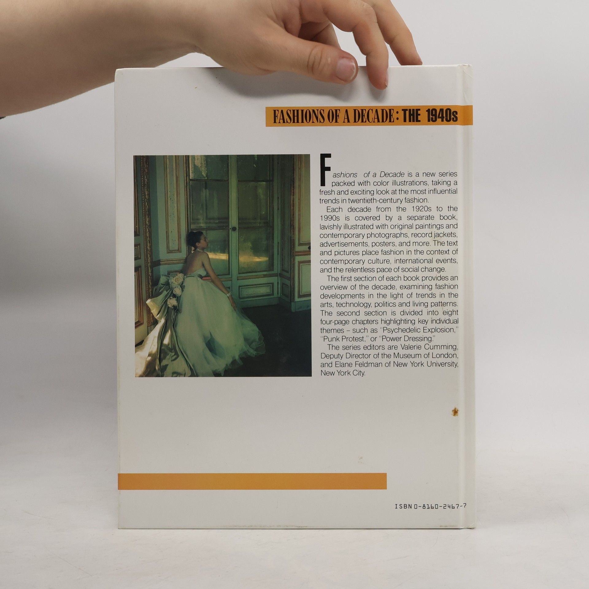 Chronicles clothing trends of the 1940s and the influence of World War II on styles of dress, availability of many fabrics, and the new ideas of "designers at war."