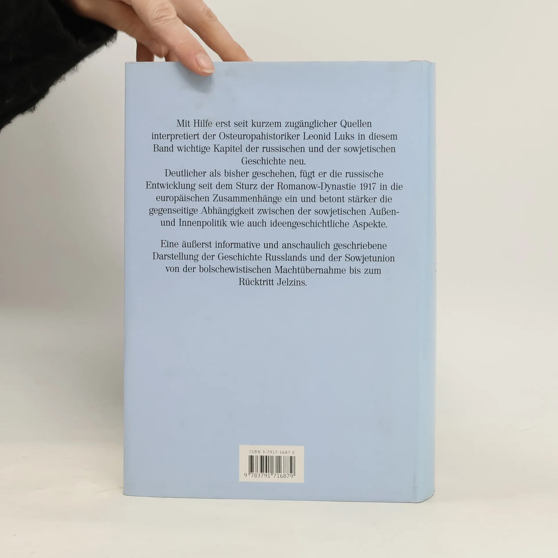 Mit Hilfe neuester Quellen interpretiert der Osteuropahistoriker Luks einige Kapitel der russischen und sowjetischen Geschichte neu. Deutlicher als bisher geschehen, fügt er die russische Entwicklung in die europäischen Zusammenhänge ein und betont stärker die Independenz zwischen der sowjetischen Außen- udn Innenpolitik wie auch ideengeschichtliche Aspekte.