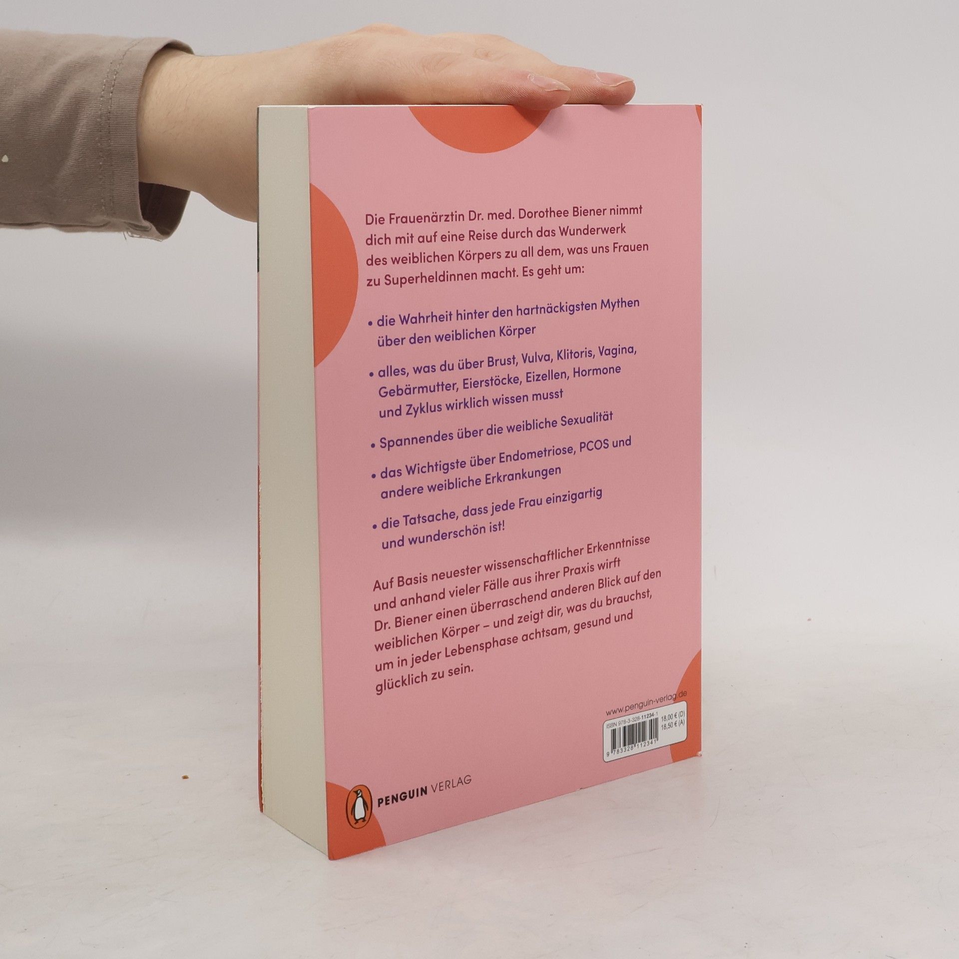 <b>Was unseren weiblichen Körper so besonders macht und warum er viel mehr drauf hat, als wir ahnen</b> Die Frauenärztin Dr. med. Dorothee Biener nimmt dich mit auf eine Reise durch das Wunderwerk des weiblichen Körpers zu all dem, was uns Frauen zu Superheldinnen macht. Es geht um: • die Wahrheit hinter den hartnäckigsten Mythen über den weiblichen Körper • alles, was du über Brust, Vulva, Klitoris, Vagina, Gebärmutter, Eierstöcke, Eizellen, Hormone und Zyklus wirklich wissen musst • Spannendes über die weibliche Sexualität • das Wichtigste über Endometriose, PCOS und andere weibliche Erkrankungen • die Tatsache, dass jede Frau einzigartig und wunderschön ist! Auf Basis neuester wissenschaftlicher Erkenntnisse und anhand vieler Fälle aus ihrer Praxis wirft Dr. Biener einen überraschend anderen Blick auf den weiblichen Körper – und zeigt dir, was du brauchst, um in jeder Lebensphase achtsam, gesund und glücklich zu sein. Ausstattung: mit Abb.