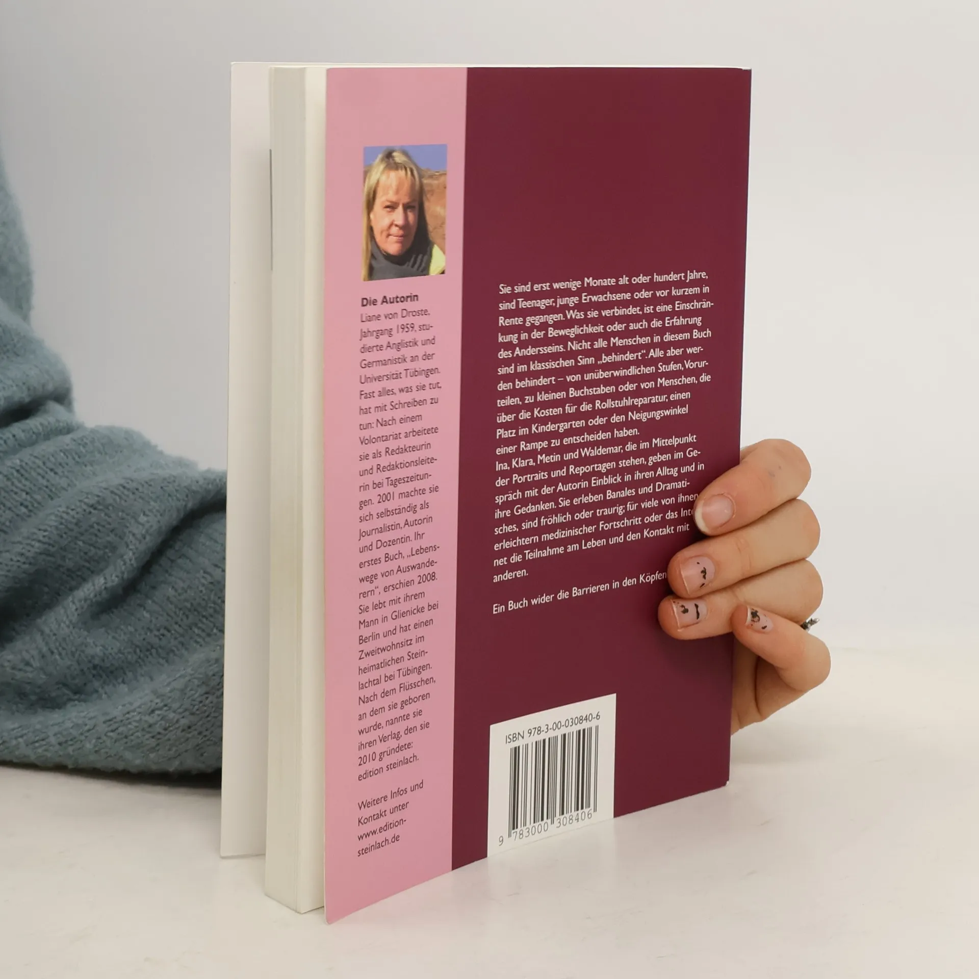 Sie sind erst wenige Monate alt oder hundert Jahre, sind Teenager, junge Erwachsene oder vor kurzem in Rente gegangen. Was sie verbindet, ist eine Einschränkung in der Beweglichkeit oder auch die Erfahrung des Andersseins. Nicht alle Menschen in diesem Buch sind im klassischen Sinn „behindert“. Alle aber werden behindert - von unüberwindlichen Stufen, Vorurteilen, zu kleinen Buchstaben oder von Menschen, die über die Kosten für die Rollstuhlreparatur, einen Platz im Kindergarten oder den Neigungswinkel einer Rampe zu entscheiden haben. Ina, Klara, Metin und Waldemar, die im Mittelpunkt der Portraits und Reportagen stehen, geben im Gespräch mit der Autorin Einblick in ihren Alltag und in ihre Gedanken. Sie erleben Banales und Dramatisches, sind fröhlich oder traurig; für viele von ihnen erleichtern medizinischer Fortschritt oder das Internet die Teilnahme am Leben und den Kontakt mit anderen. Ein Buch wider die Barrieren in den Köpfen.